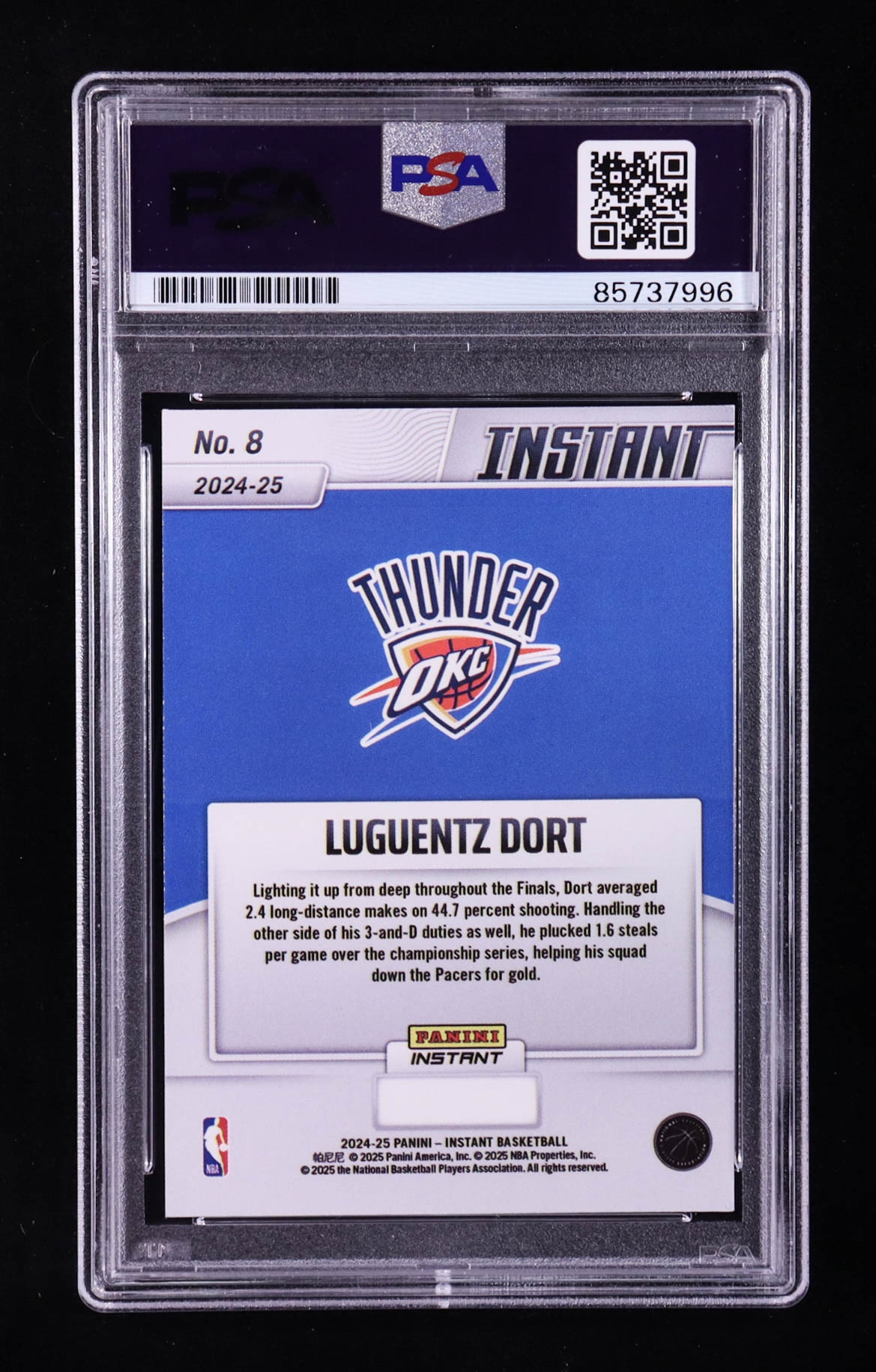 Luguentz Dort Signed 2024-25 Panini Instant #8 (PSA | Autograph Graded PSA 10)