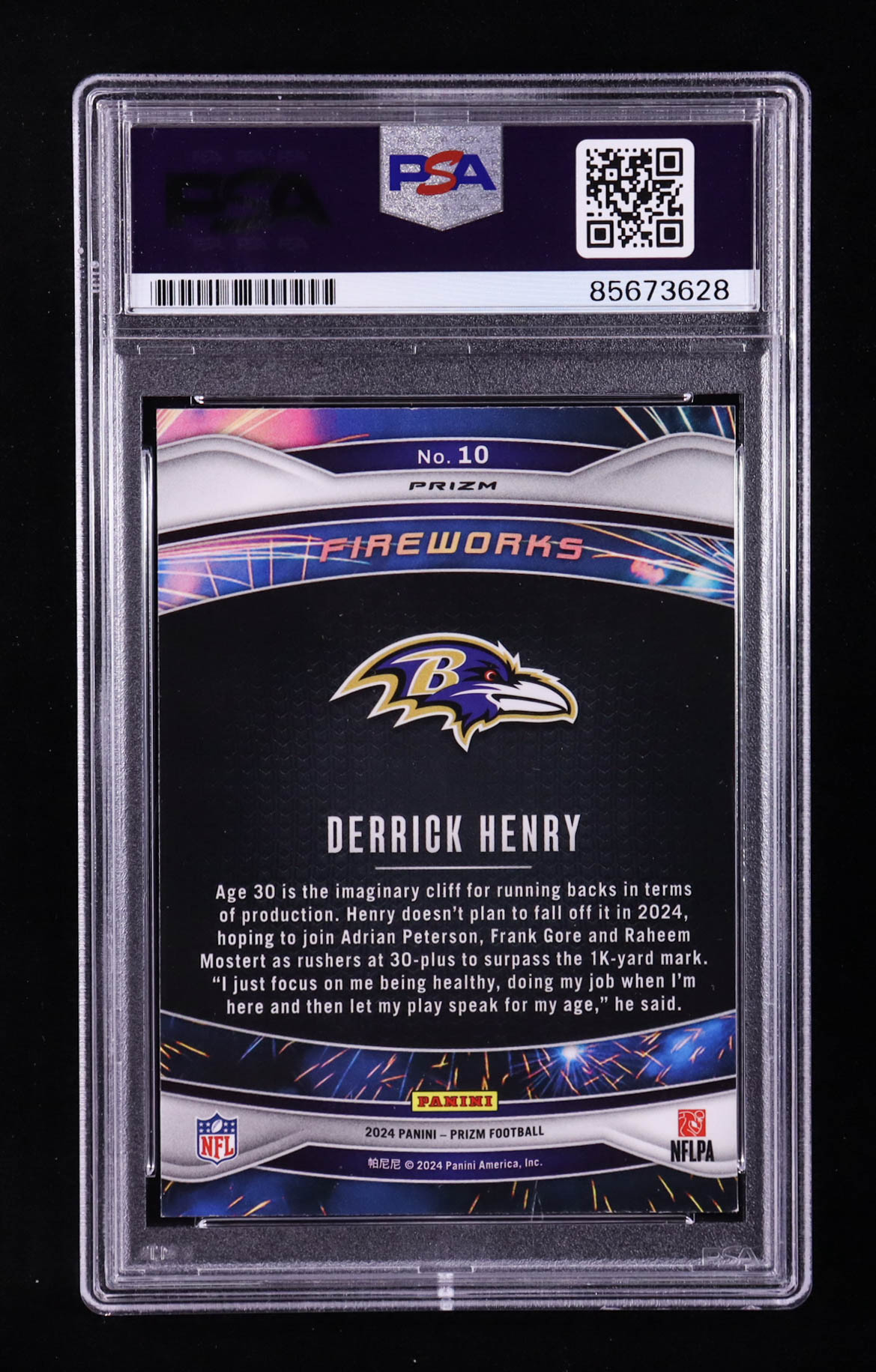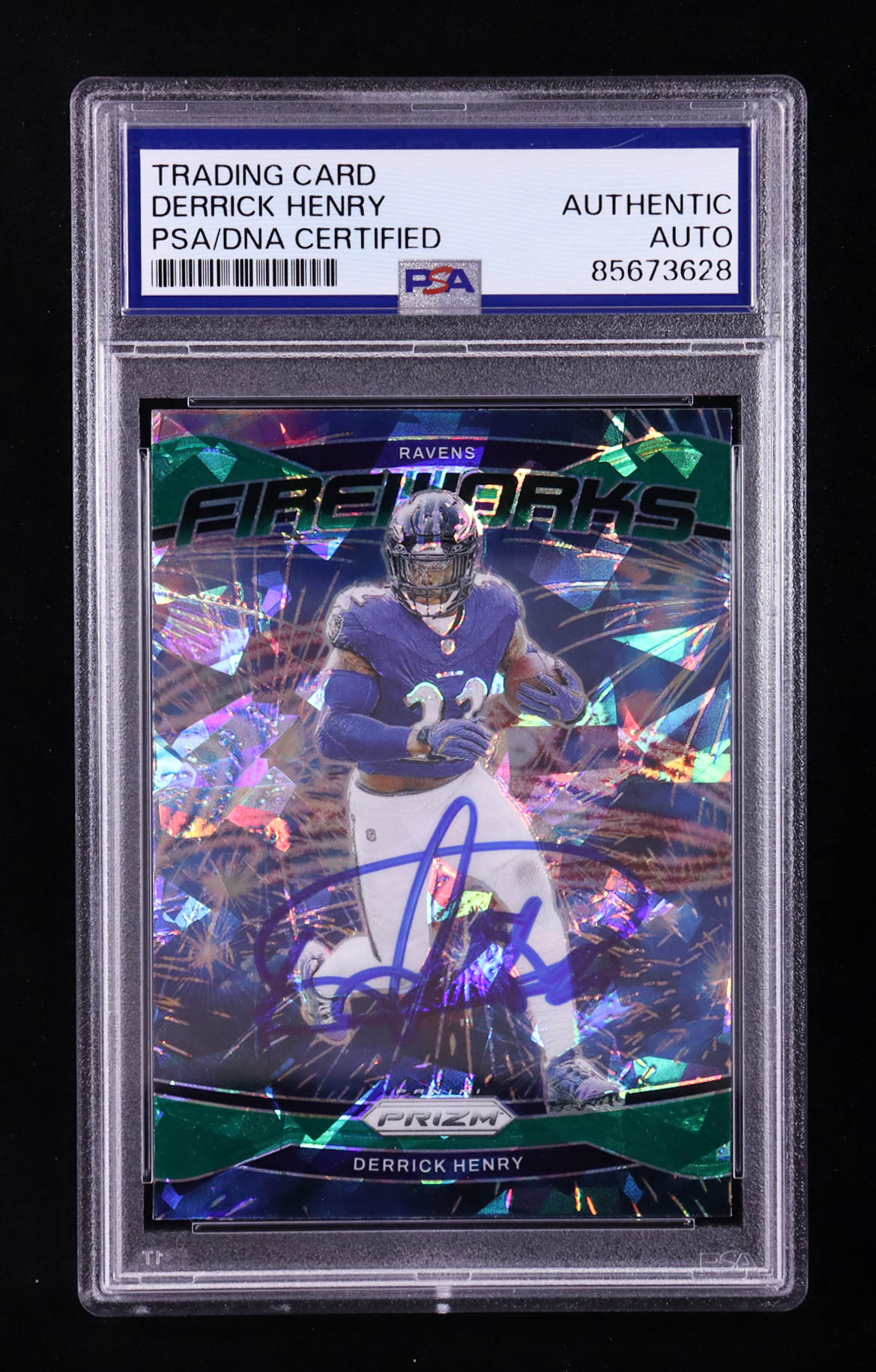 Derrick Henry Signed 2024 Panini Prizm Fireworks #10 (PSA)