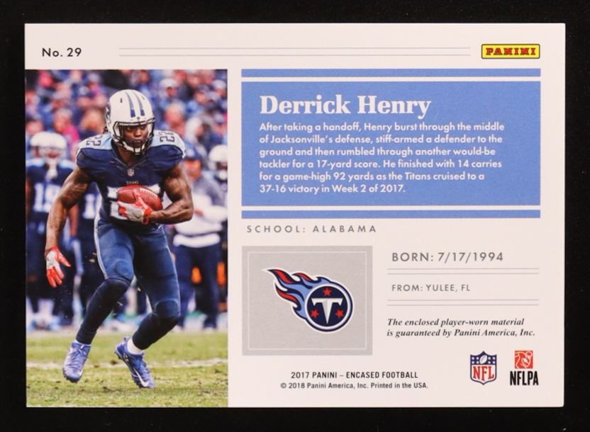 Derrick Henry 2017 Panini Encased Substantial Swatches Emerald #29 #1/5