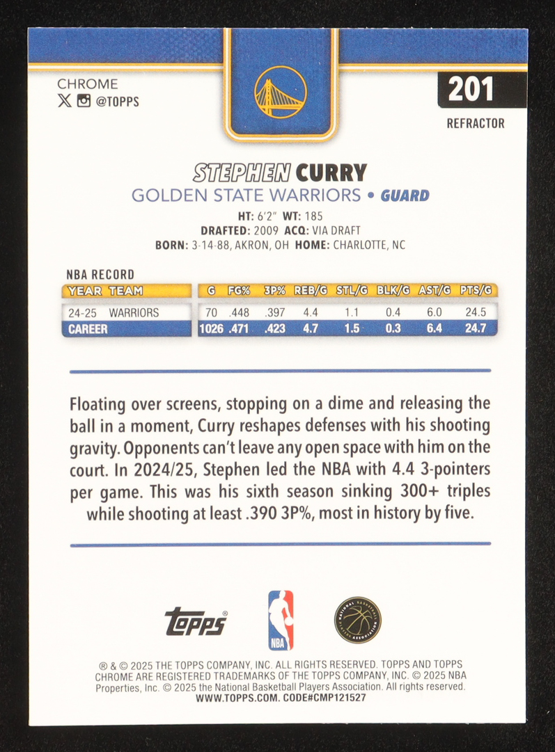 Stephen Curry 2025-26 Topps Chrome Refractors #201