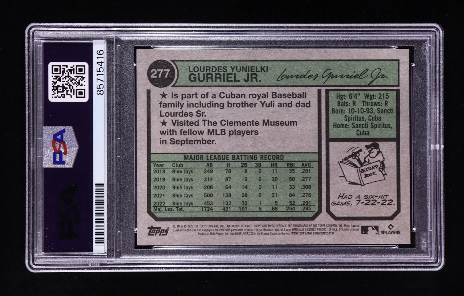 Lourdes Gurriel Jr. Signed 2023 Topps Heritage #277 (PSA | Autograph Graded PSA 10)