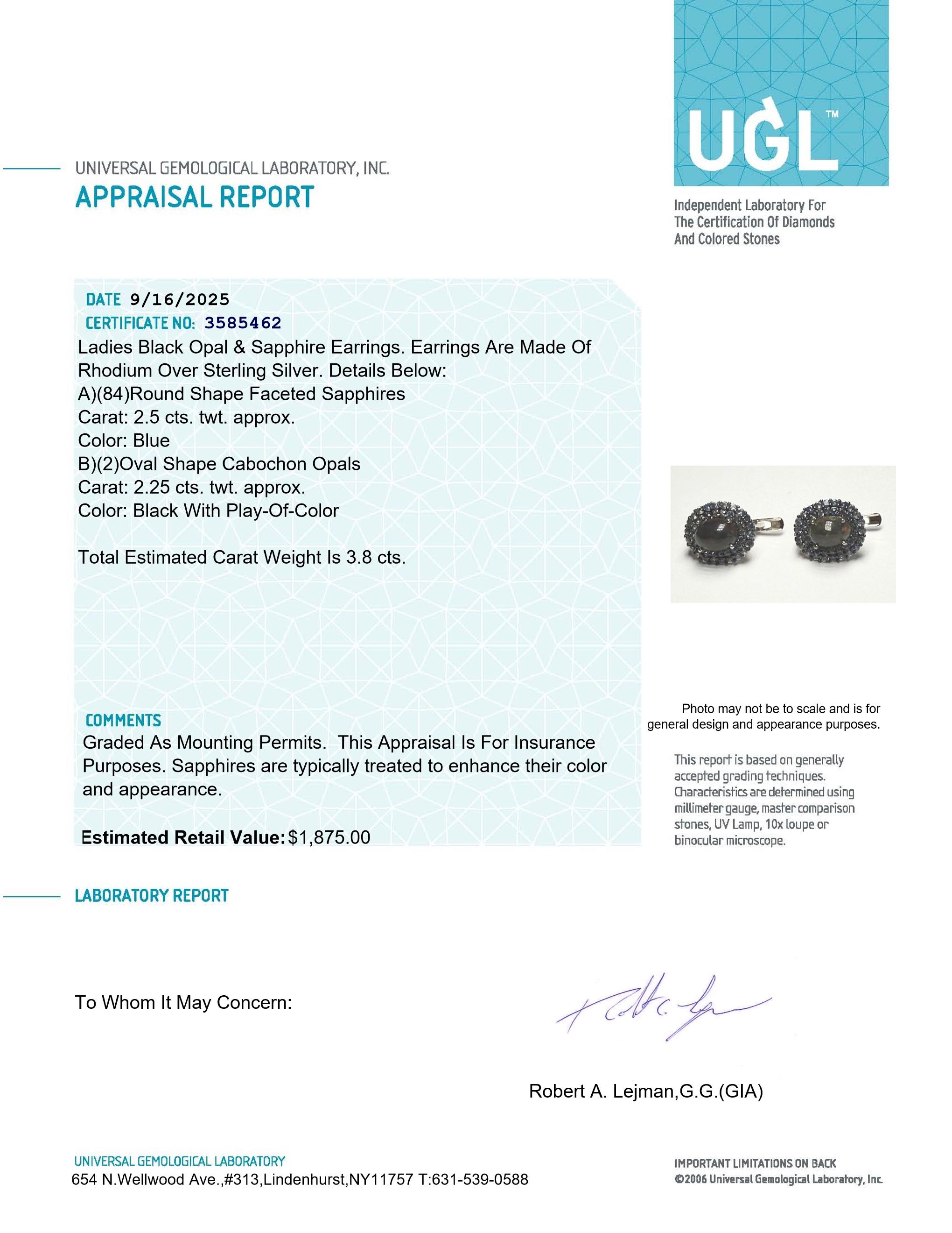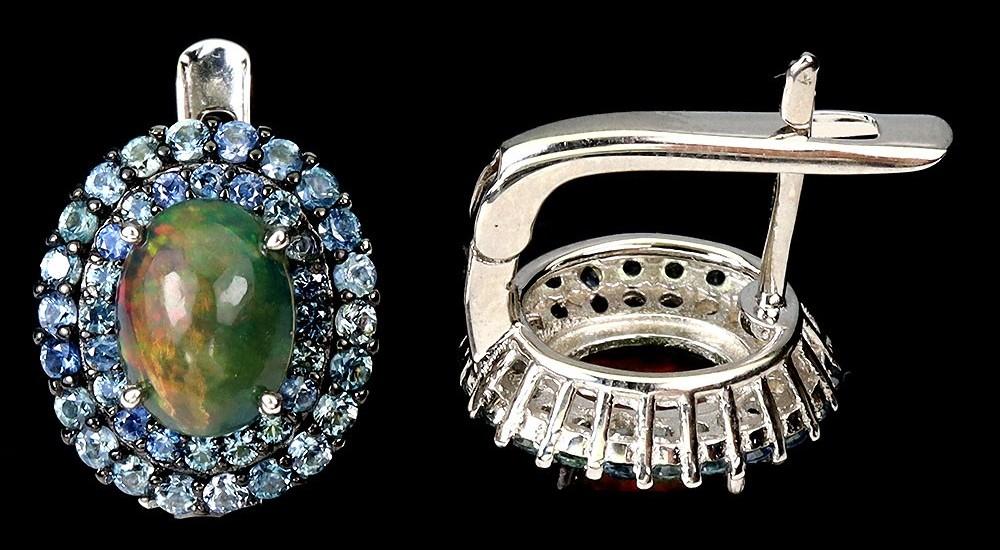 3.80 Carats Black Opal & Blue Sapphire Earrings | $1,875 Estimated Retail Value (UGL Cert) | Brand New