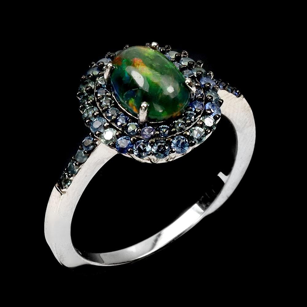 2.00 Carats Black Opal & Blue Sapphire Ring | $1,650 Estimated Retail Value (UGL Cert) | Brand New