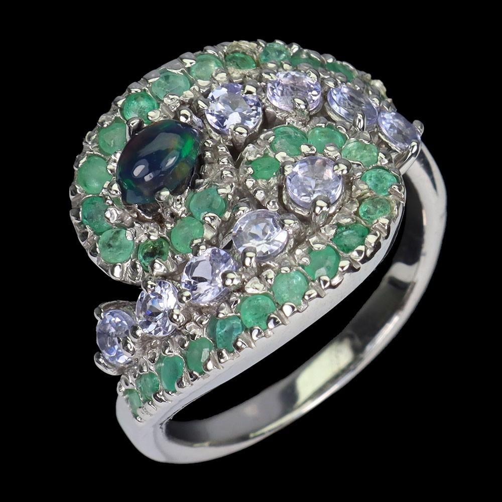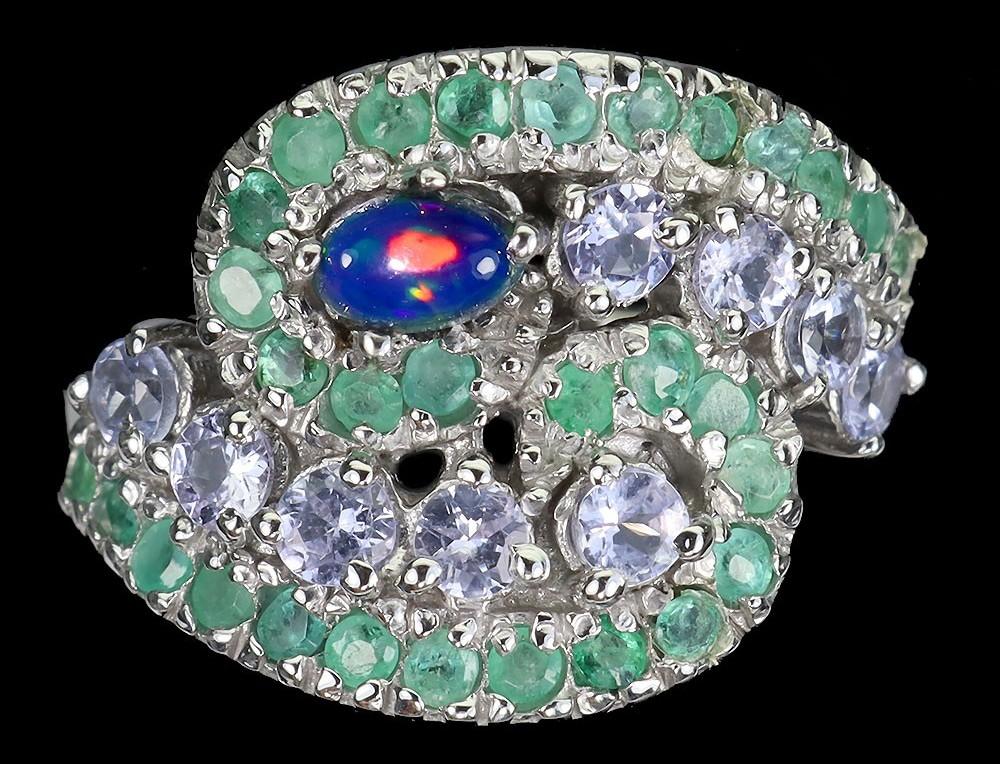 1.30 Carats Emerald, Tanzanite & Black Opal Ring | $1,500 Estimated Retail Value (UGL Cert) | Brand New