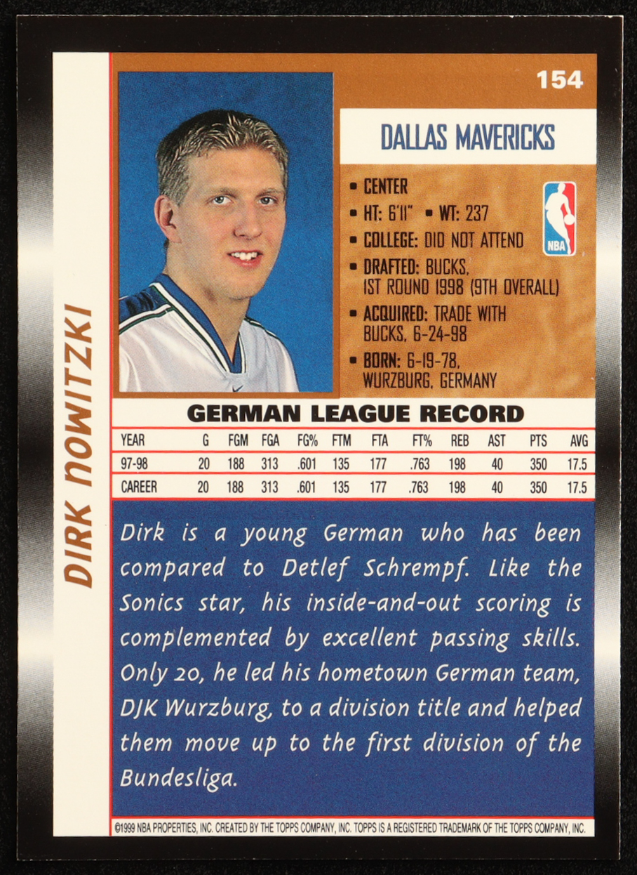 Dirk Nowitzki 1998-99 Topps #154 RC