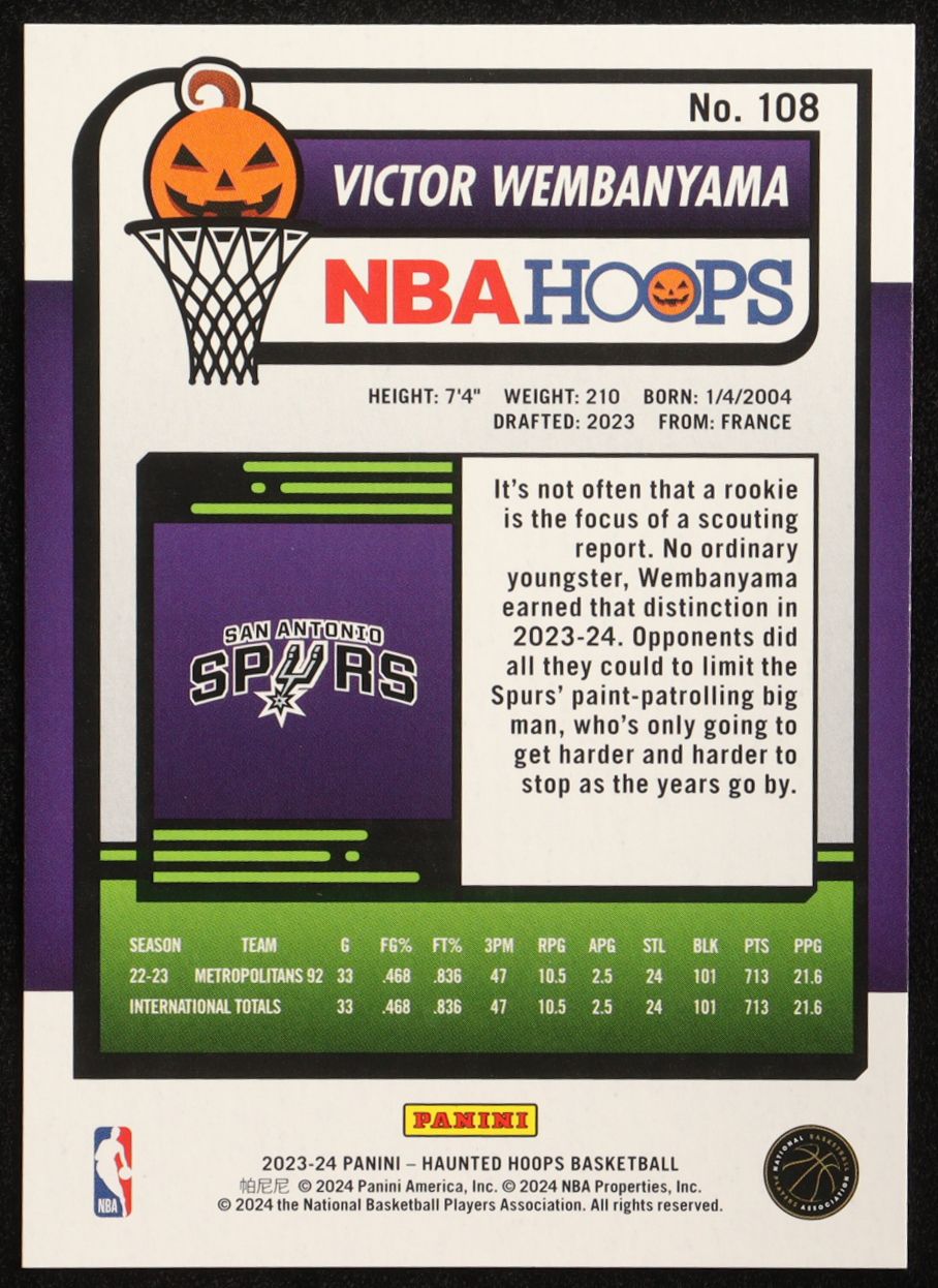 Victor Wembanyama 2023-24 Hoops Haunted Hoops #108 RC