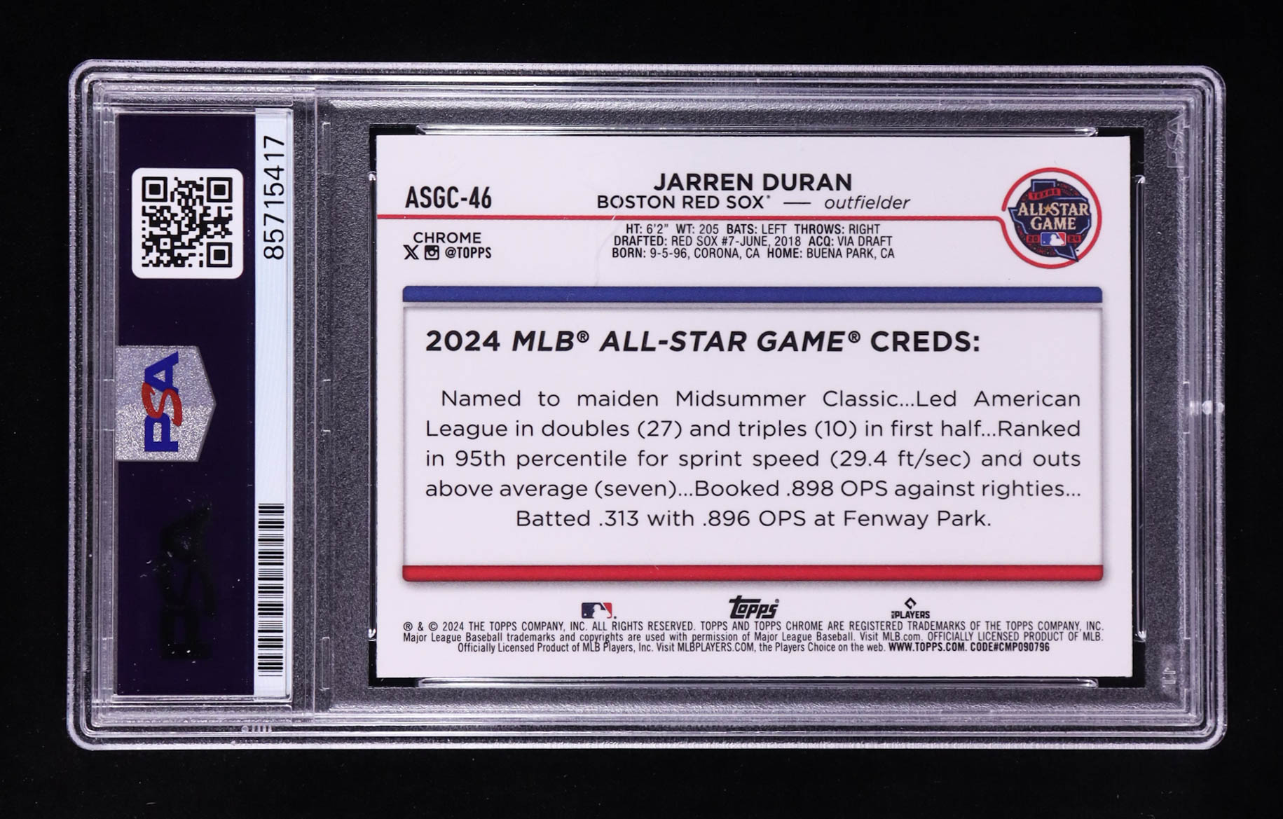 Jarren Duran Signed 2024 Topps Chrome All Star Game #ASGC-46 (PSA | Autograph Graded PSA 10)
