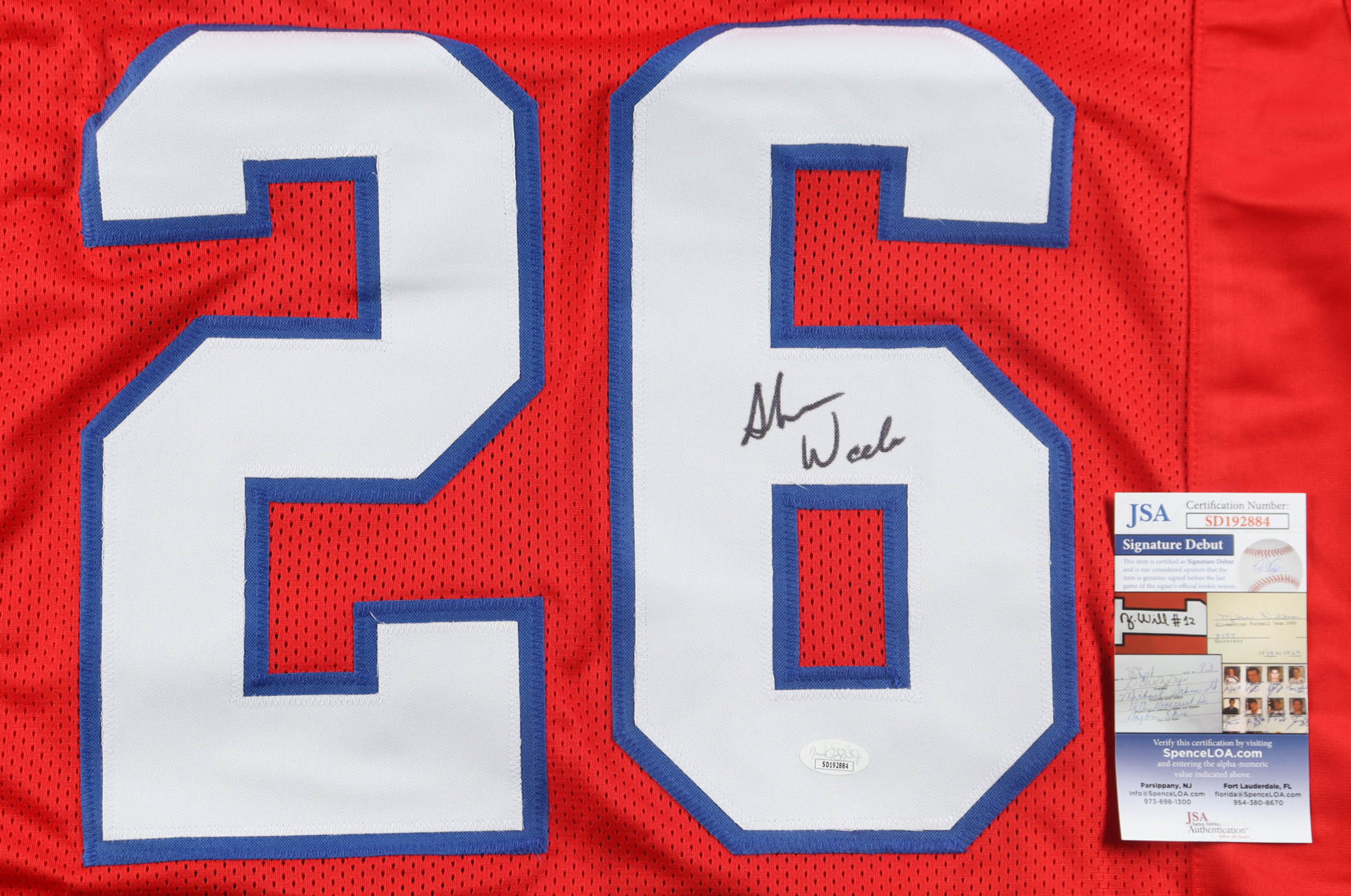 The autograph(s) includes an official James Spence Authentication (JSA) "Signature Debut" hologram and COA. "Signature Debut" is the autographed memorabilia equivalent to a rookie card. The JSA definition of a "Signature Debut" is as follows: "Any item that is autographed and received by JSA prior to the last game of the signer's official rookie season.