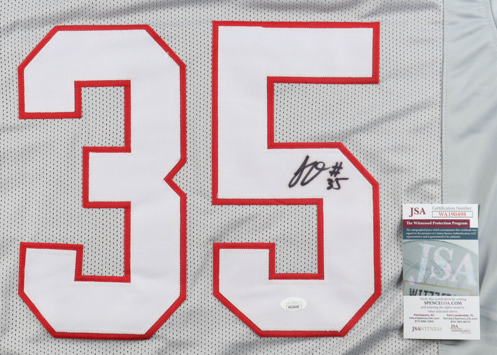 Custom jersey with everything sewn on, size XL. Hand-signed by Jamel Dean. Please note, the signature has bled.