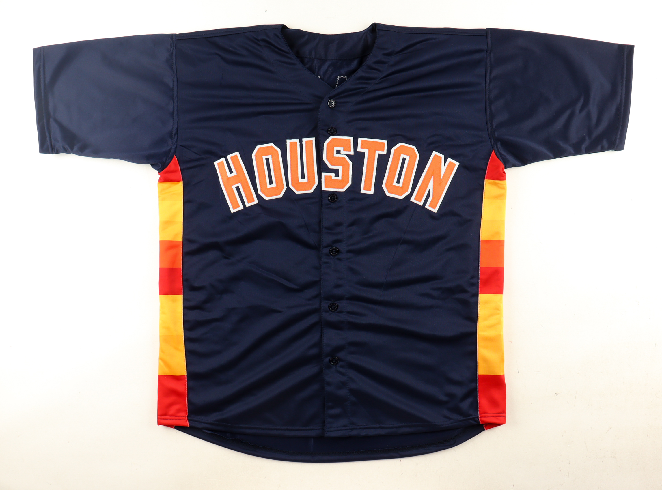 Custom jersey with everything sewn on, size XL. Hand-signed and inscribed by Yordan Alvarez.