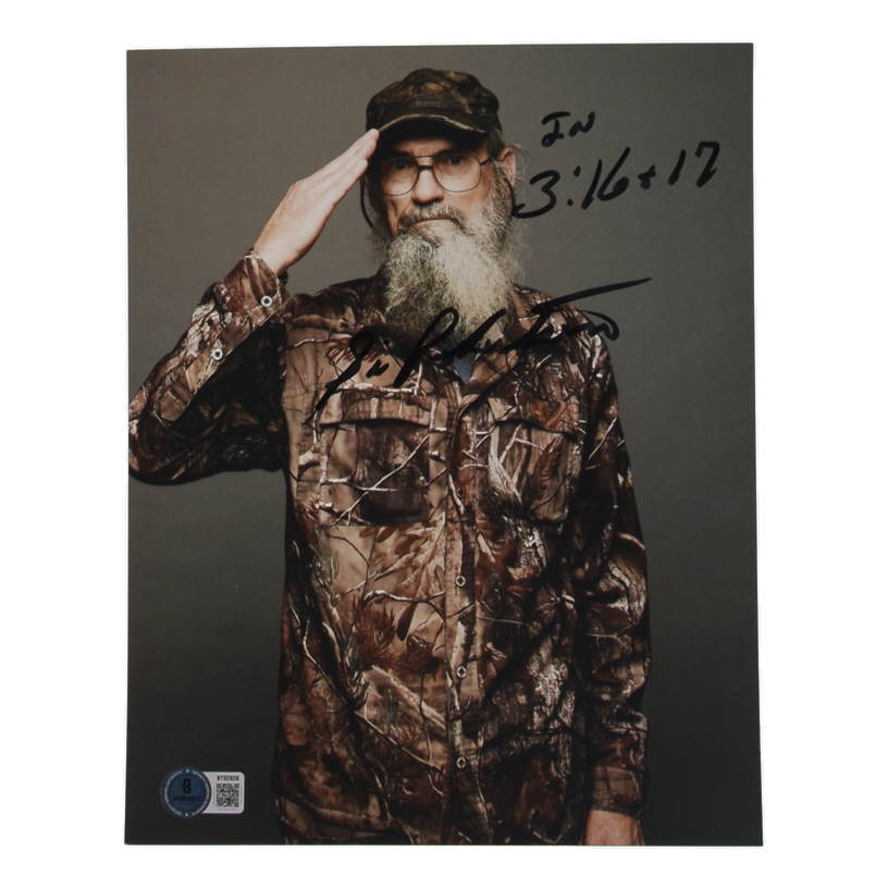 Photo measures 8" x 10" in size and has been hand-signed by Si Robertson