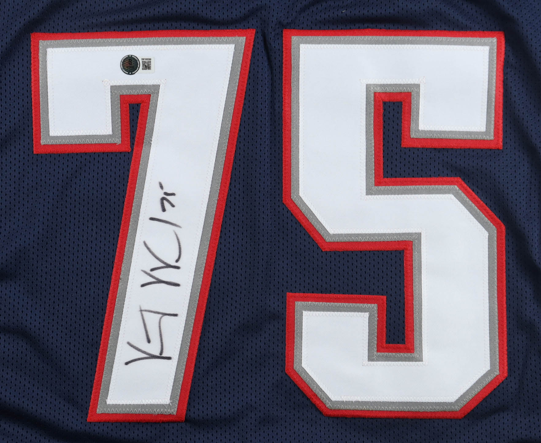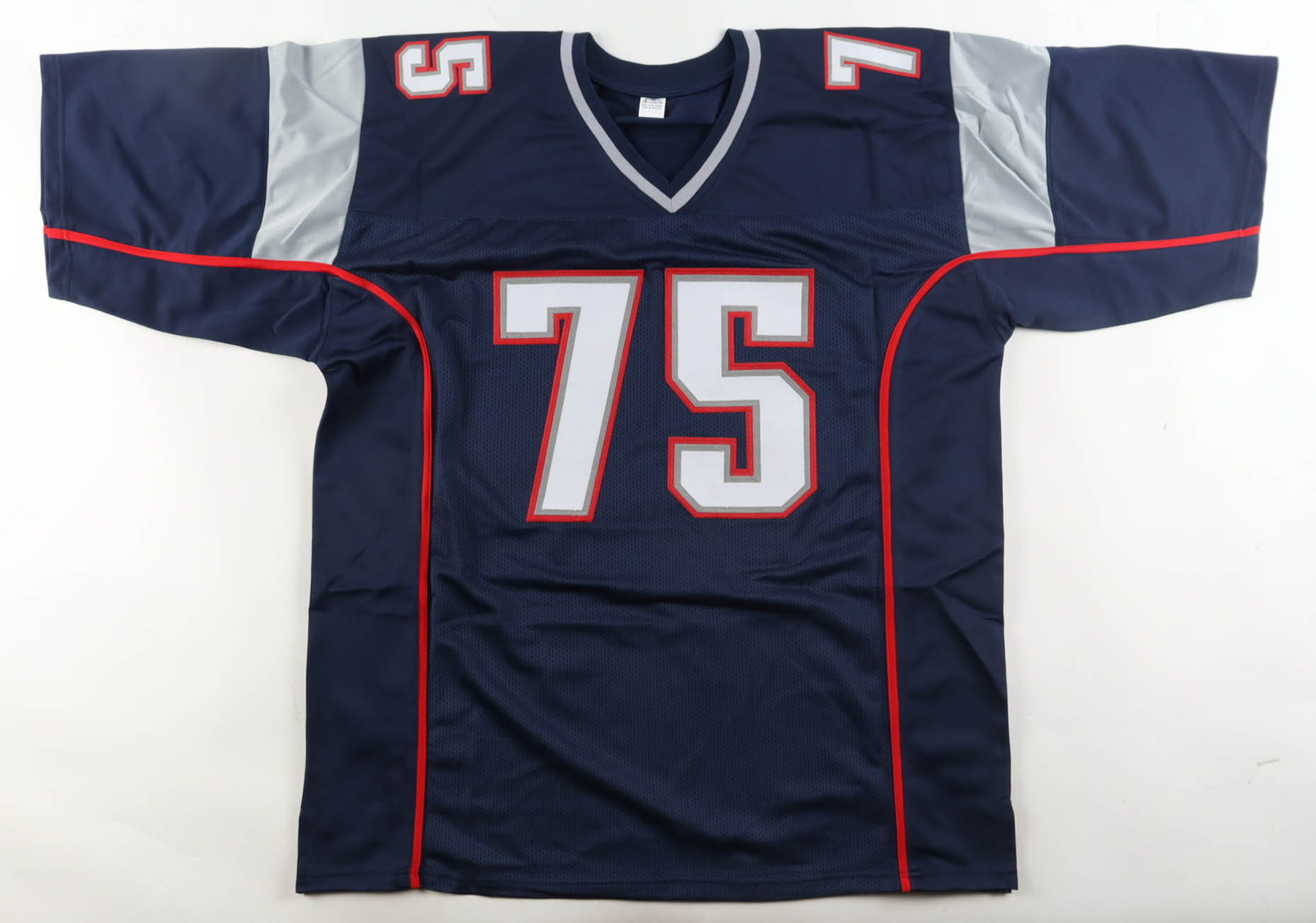 Custom jersey with everything sewn on, size XL. Hand-signed by Vince Wilfork.