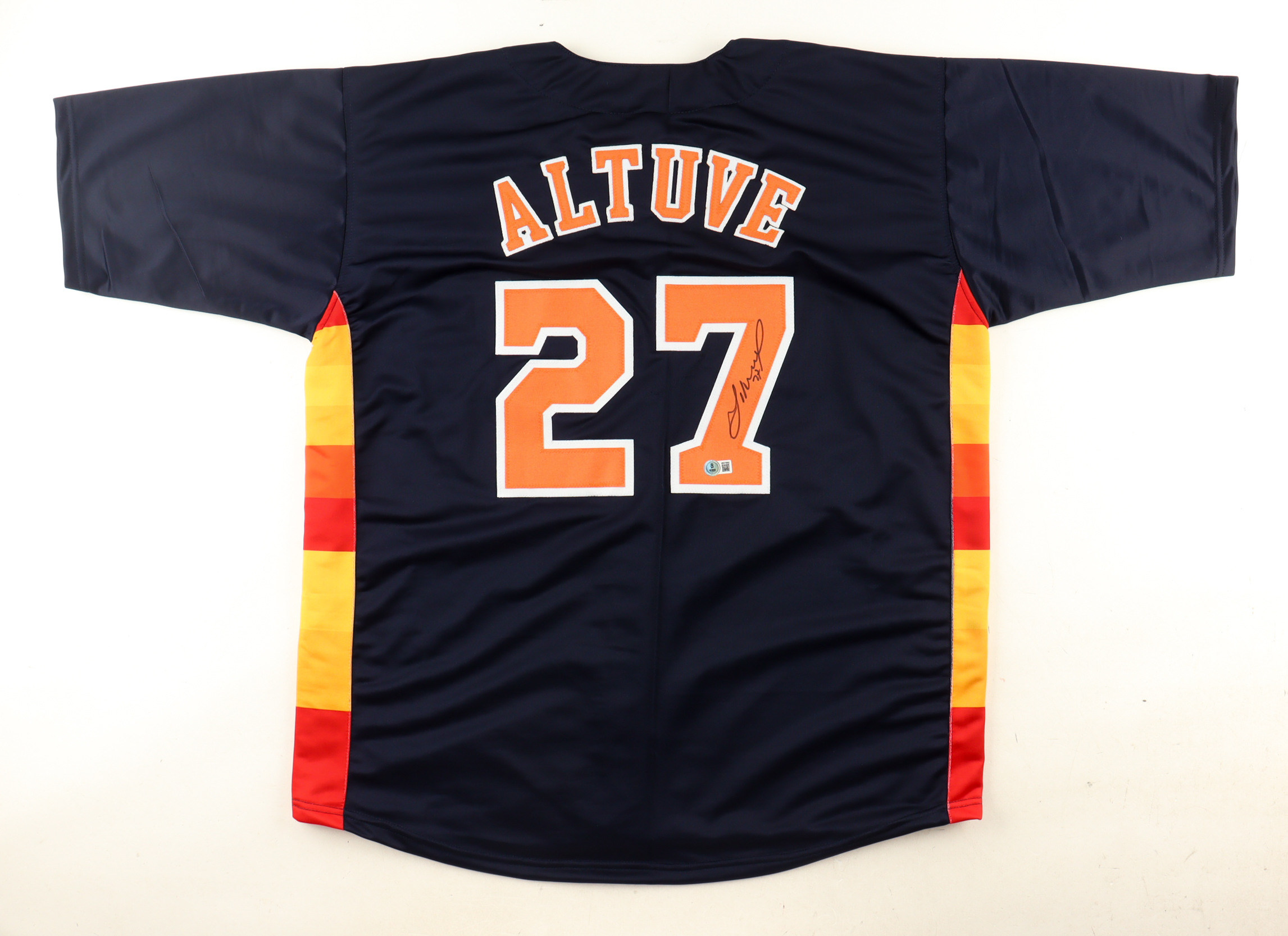 Custom jersey with everything sewn on, size XL. Hand-signed by Jose Altuve.