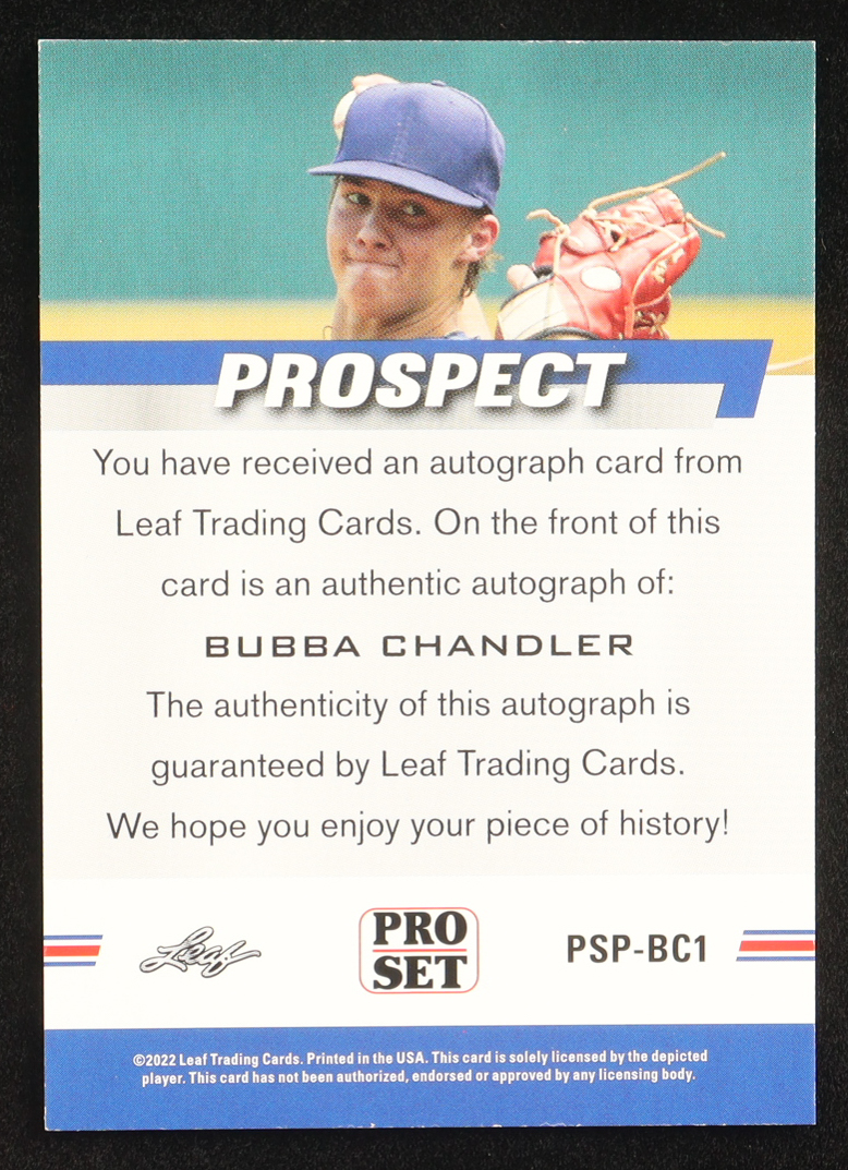 Bubba Chandler 2022 Leaf Pro Set Prospect Autographs #PSPBC1 RC