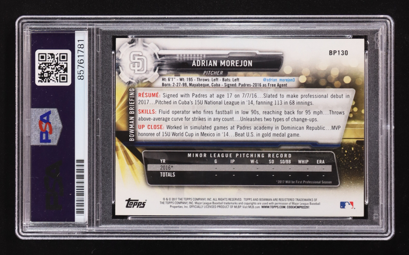 Adrian Morejon Signed 2017 Bowman 1st #BP-130 RC (PSA | Autograph Graded PSA 10)