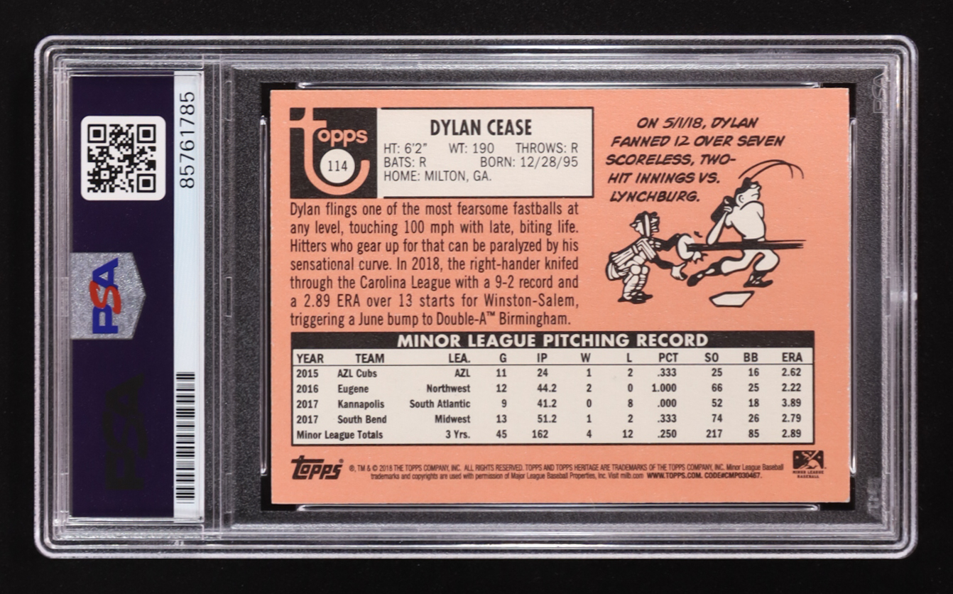 Dylan Cease Signed 2018 Topps Heritage Minors #114 RC (PSA | Autograph Graded PSA 10)