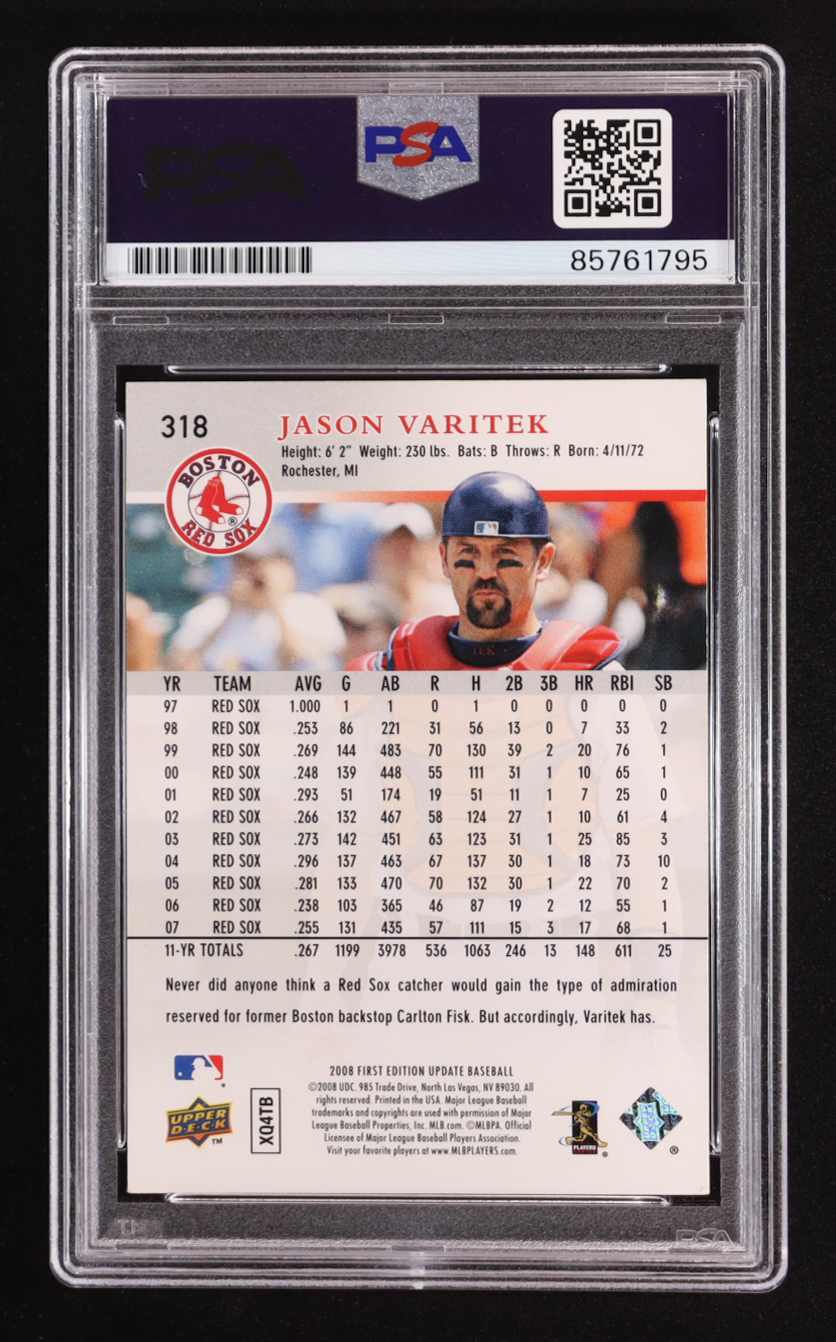 Jason Varitek Signed 2008 Upper Deck First Edition Update #318 (PSA | Autograph Graded PSA 10)