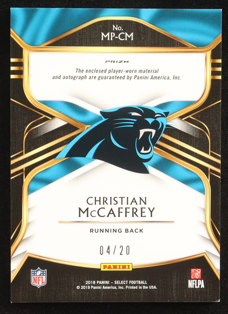 Christian McCaffrey 2018 Select Signature Memorabilia Prizm Blue #3 #04/20