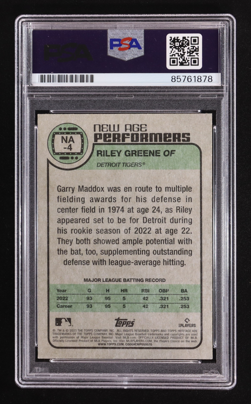Riley Greene Signed 2023 Topps Heritage New Age Performers #NA-4 RC (PSA | Autograph Graded PSA 10)