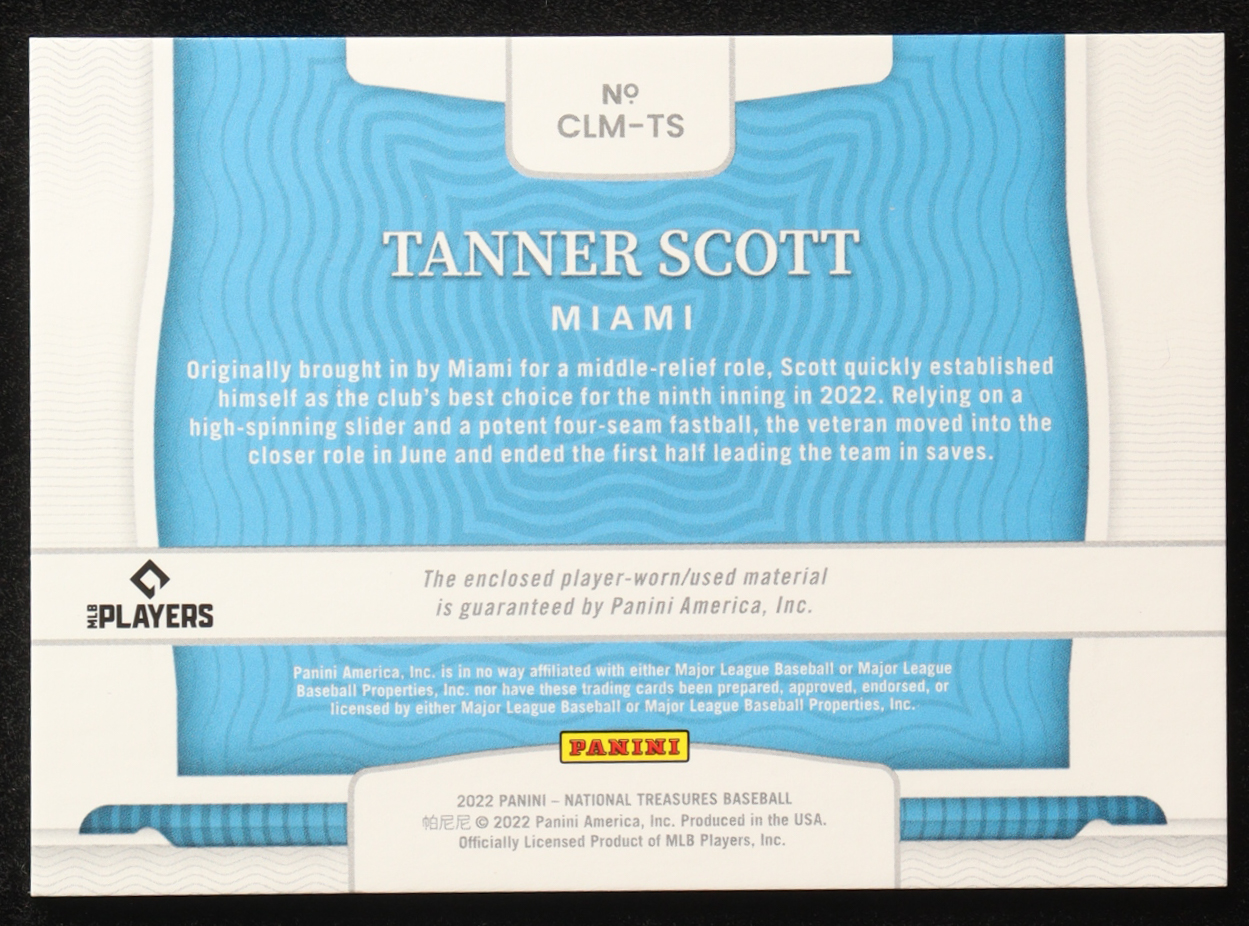 Tanner Scott 2022 Panini National Treasures Colossal Materials Game-Worn Patch #8 #95/99