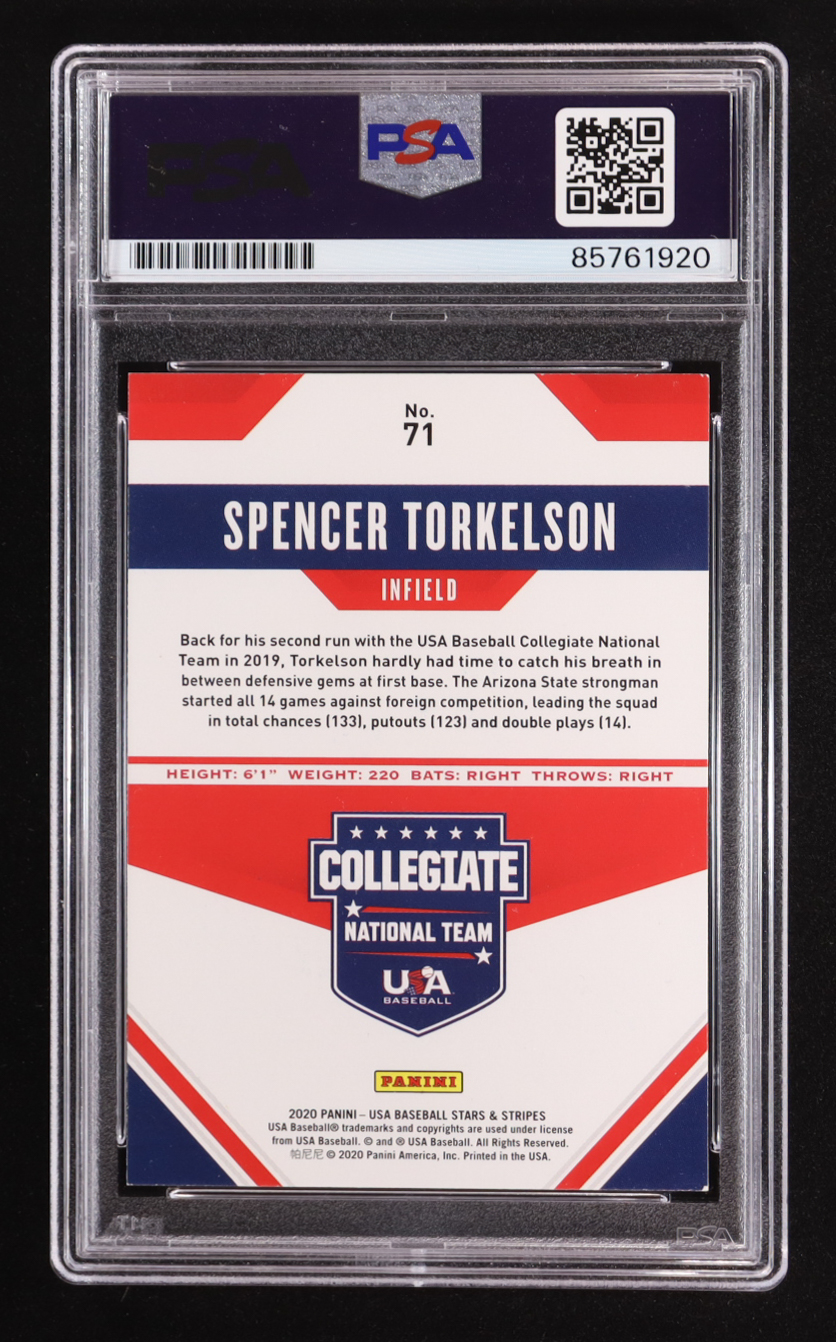 Spencer Torkelson Signed 2020 Panini USA Baseball Stars & Stripes Inscribed " Go USA ! " #71 RC (PSA)