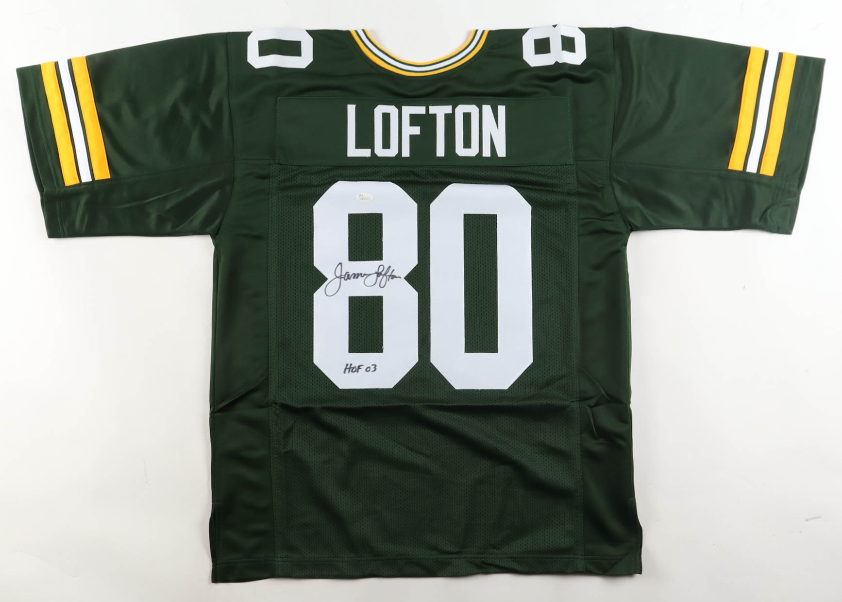 Custom jersey with everything sewn on, size XL. Hand-signed and inscribed by James Lofton (HOF).