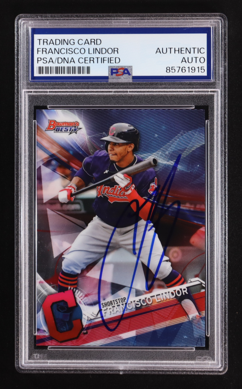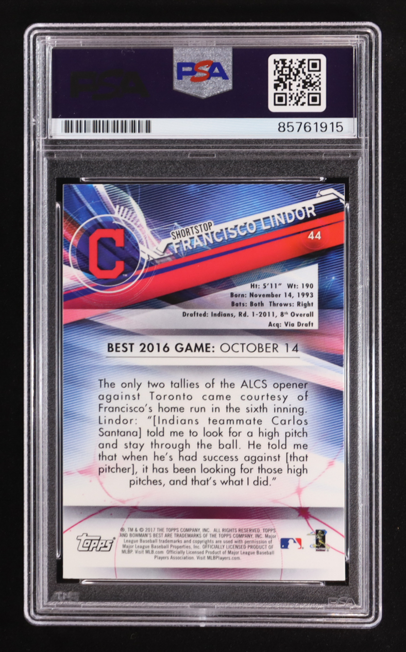 Francisco Lindor Signed 2017 Bowman's Best #44 (PSA)