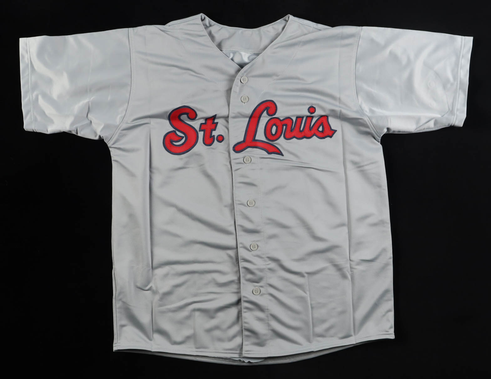 Custom jersey with everything sewn on, size XL. Hand-signed by Lou Brock (D. 2020, HOF).