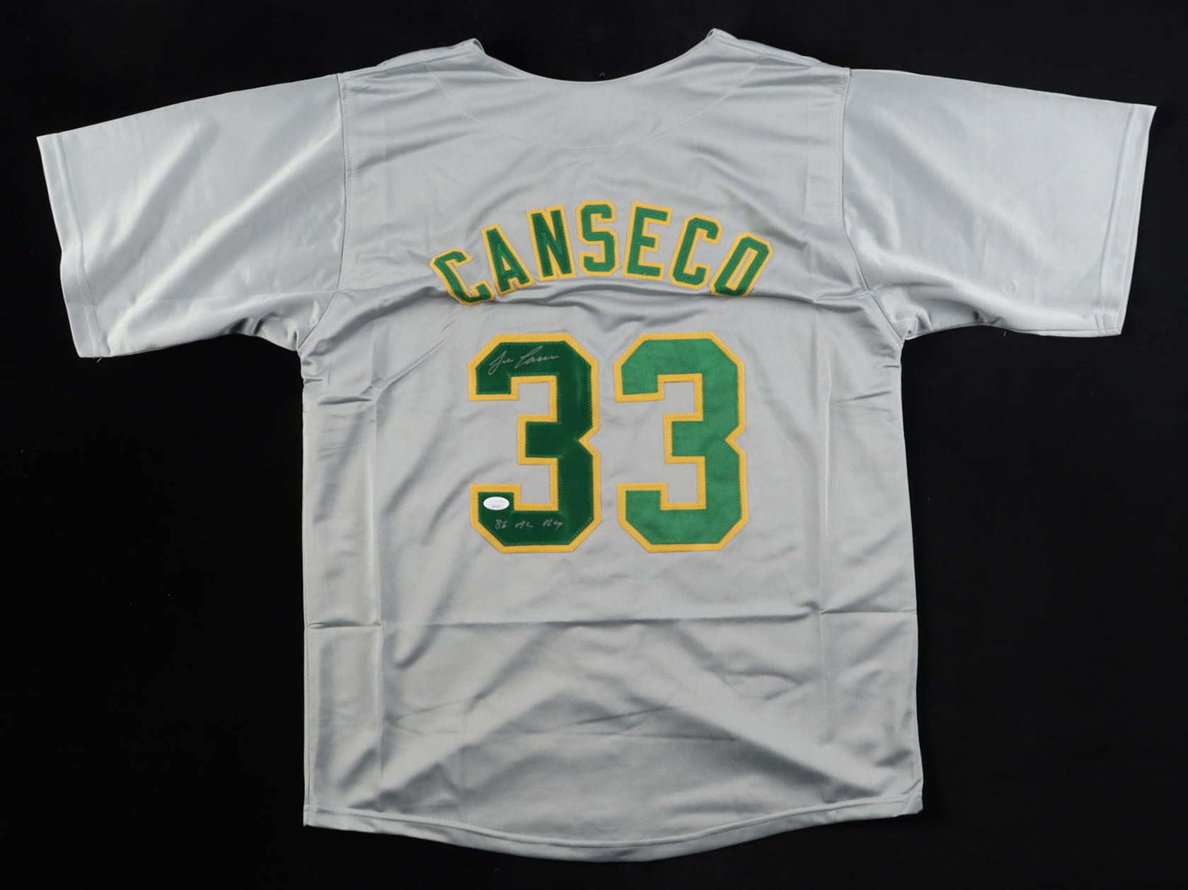 Custom jersey with everything sewn on, size XL. Hand-signed and inscribed by Jose Canseco.
