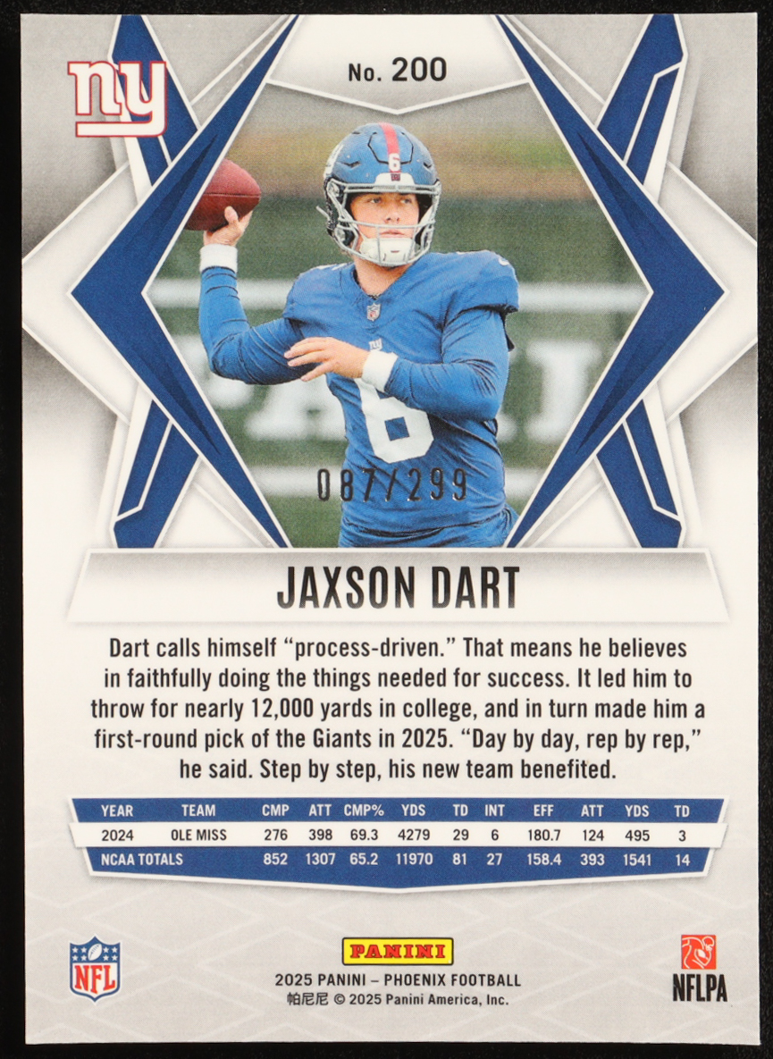 Jaxson Dart 2025 Panini Phoenix Pink Winter #200 #087/299 RC