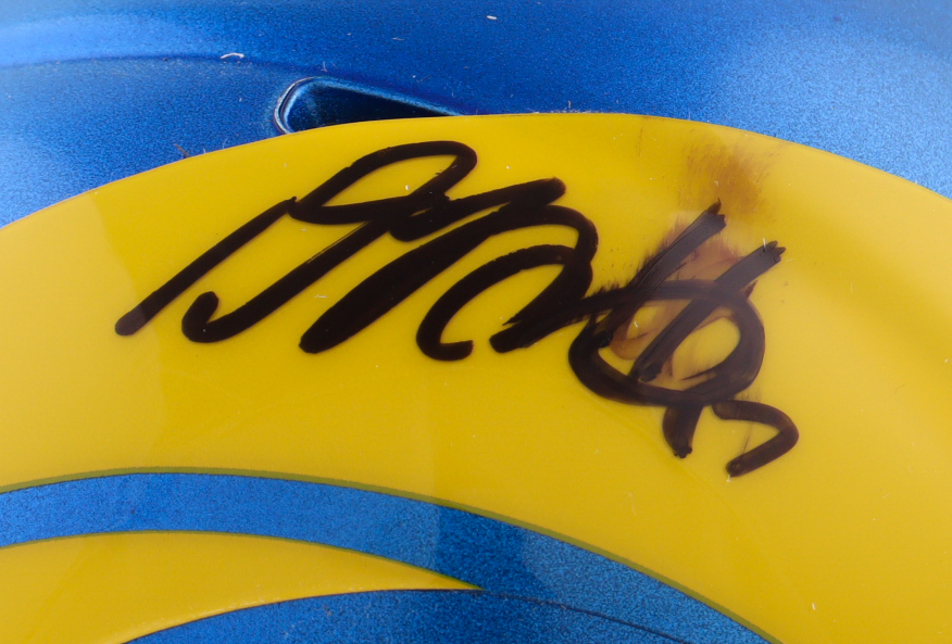 Riddell Los Angeles Rams Speed mini helmet has been hand-signed by Davante Adams. Please note the smudged signature.