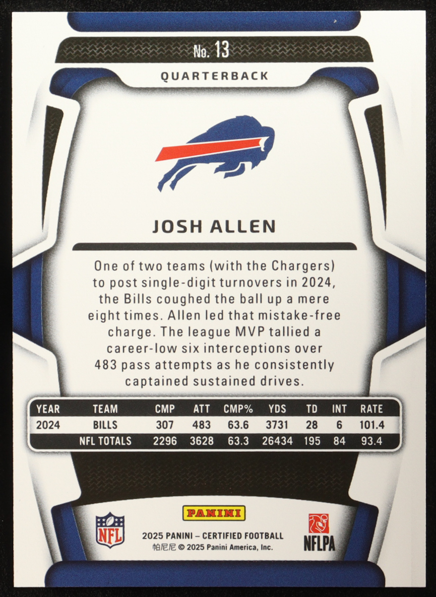 Josh Allen 2025 Certified Mirror Teal #13 #72/75