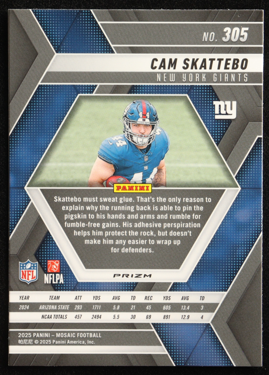 Cam Skattebo 2025 Panini Mosaic Blue Scope #305 RC