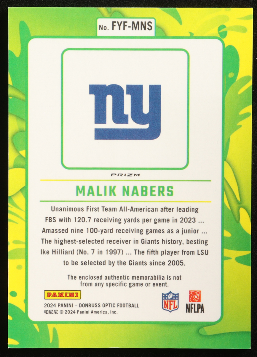 Malik Nabers 2024 Donruss Optic First Year Fresh Jerseys Blue Hyper #28 RC