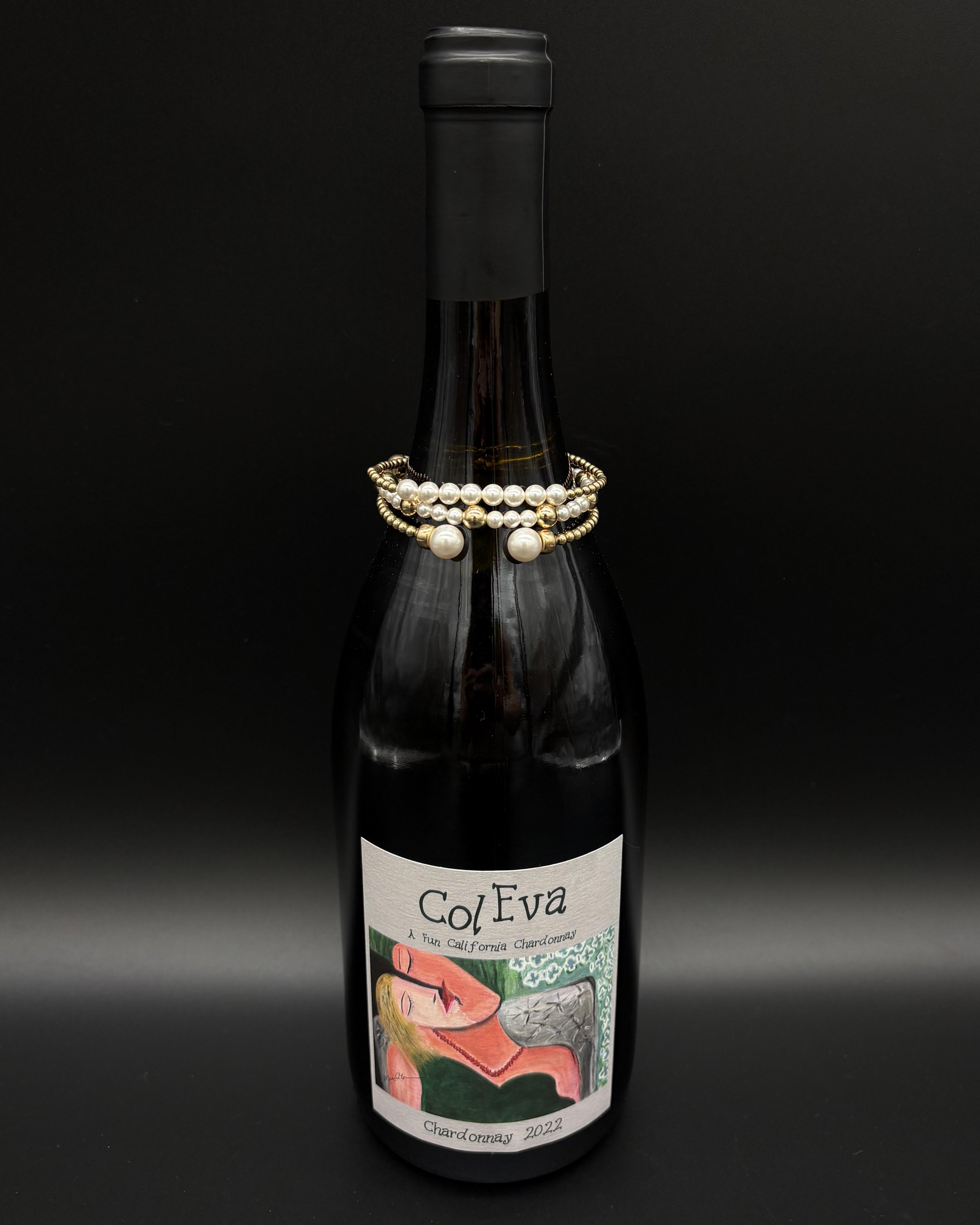 Get ready to sip and sparkle with this pearl bracelet stack from Enewton! Made with 14kt gold-filled beads, pearl crystals, and high-performance elastic, these bracelets are meant for worry-free wear' so you can sleep, shower, and sweat in style. Paired with a bottle of 2022 ColEva Chardonnay, a S.R. Perrott California Exclusive./r/nIncludes:/r/n- (1) Pearl sincerity pattern 4mm bead bracelet - 6mm gold/r/n- (1) Gold bliss 2mm bead bracelet in Pearl/r/n- (1) Classic gold 3mm bead cuff in Pearl
