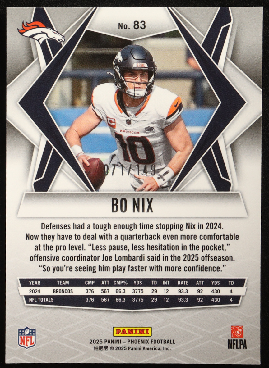 Bo Nix 2025 Panini Phoenix Green Winter #83 #071/149