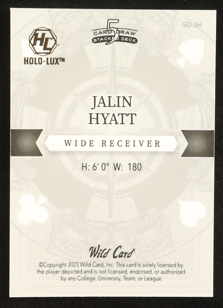 Jalin Hyatt 2023 Wild Card 5 Card Draw Stacked Deck King Diamonds Hololux Purple Shimmer #SDJH #4/4 RC