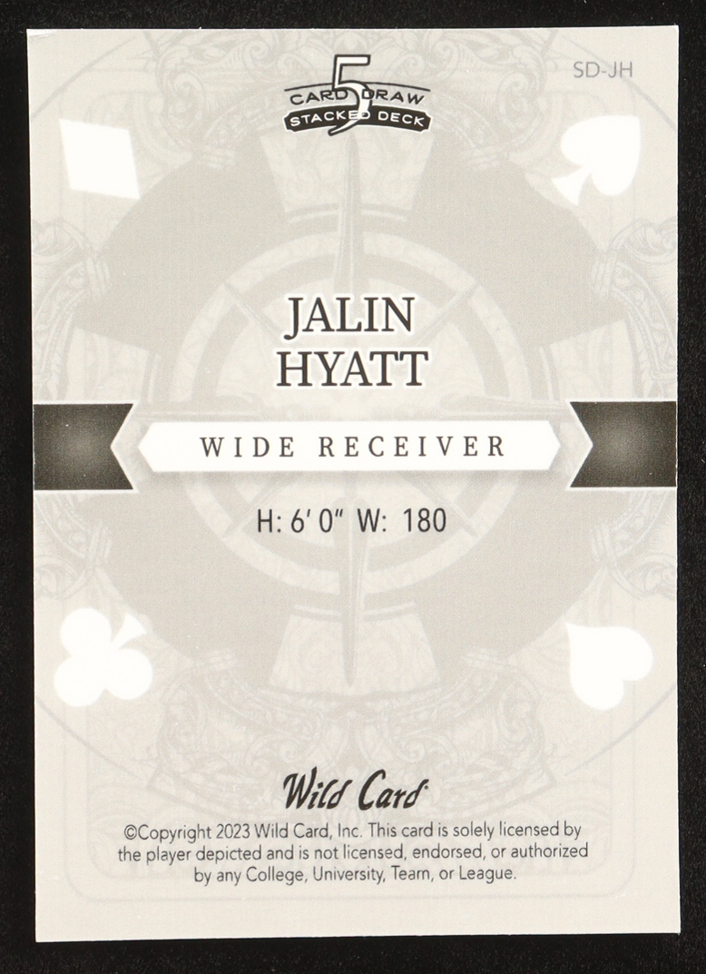 Jalin Hyatt 2023 Wild Card 5 Card Draw Stacked Deck King Hearts Purple Lazers #SDJH #1/4 RC