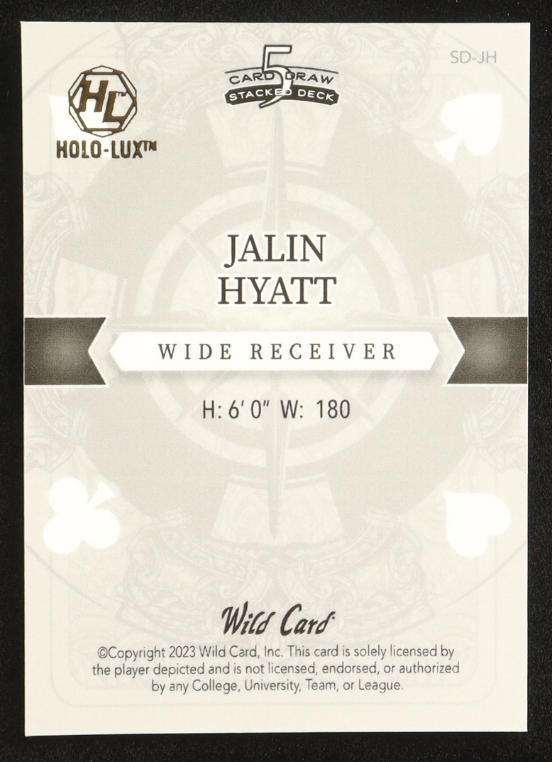 Jalin Hyatt 2023 Wild Card 5 Card Draw Stacked Deck Hololux King Clubs Gold Sparkle #SDJH #5/5 RC