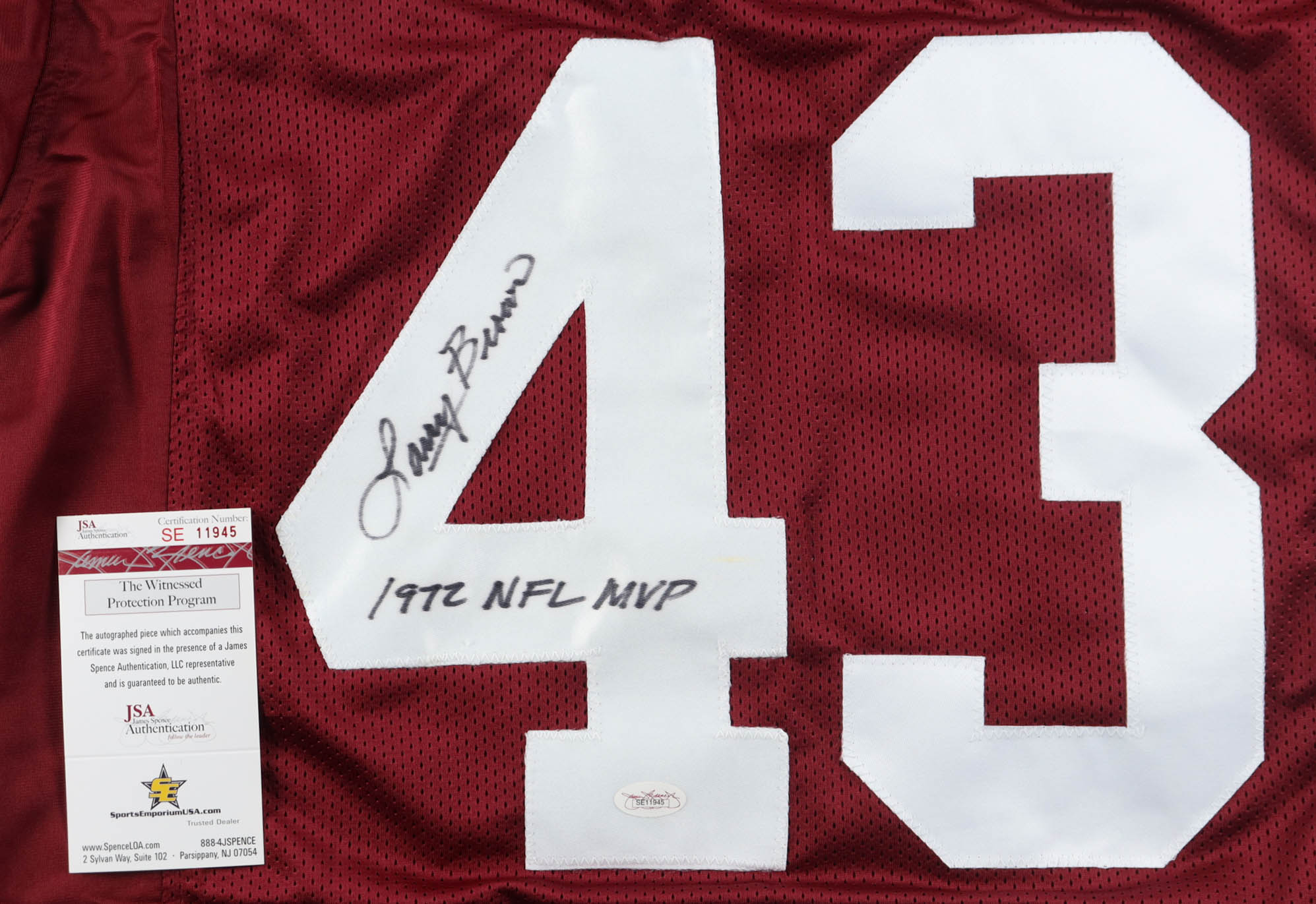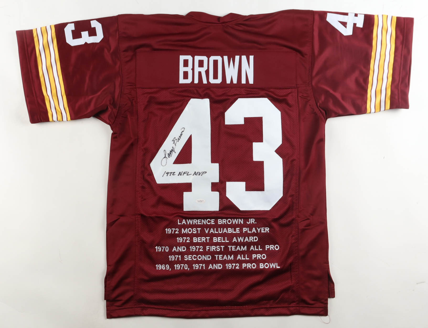 Larry Brown Signed Career Highlight Stat Jersey Inscribed "1972 NFL MVP" (JSA)