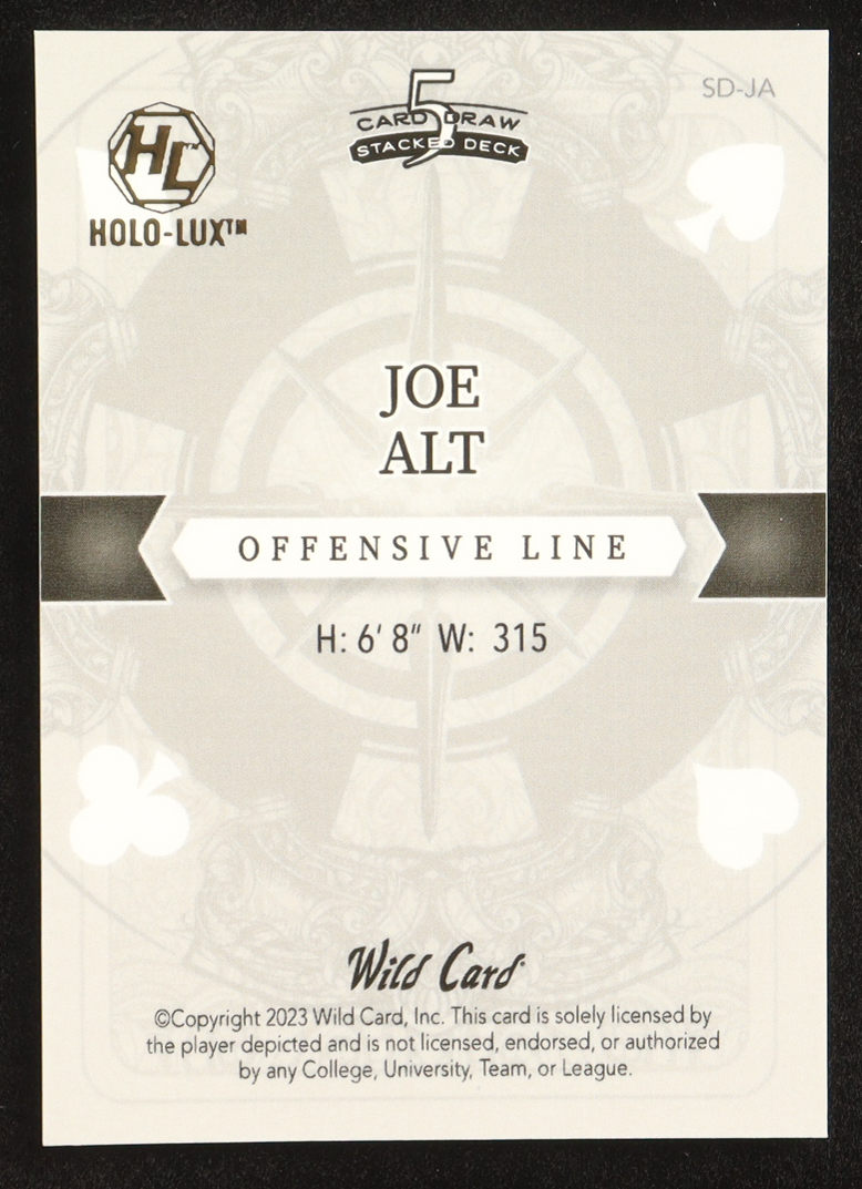 Joe Alt 2023 Wild Card 5 Card Draw Stacked Deck Hololux King Spades Black Holo #SDJA #1/1 RC