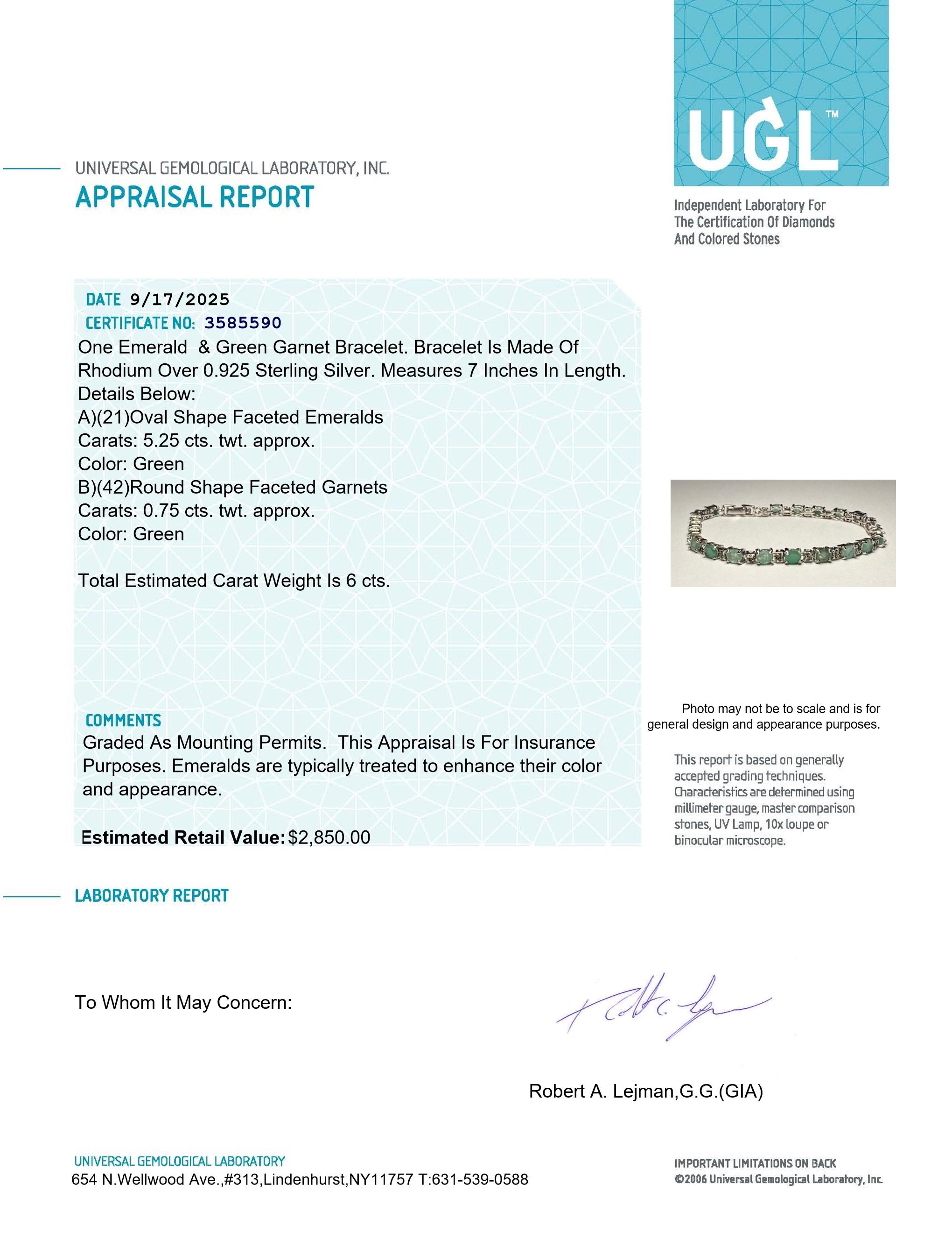 6.00 Carats Emerald & Green Garnet Bracelet | $2,850 Estimated Retail Value (UGL Cert) | Brand New