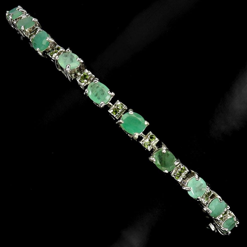 Offered for sale is a new emerald and green garnet bracelet crafted in rhodium over .925 sterling silver. This elegant bracelet features vibrant oval emeralds accented by round green garnets in a classic tennis-style design. A refined and timeless piece suitable for everyday wear or special occasions. Includes UGL appraisal for insurance purposes.