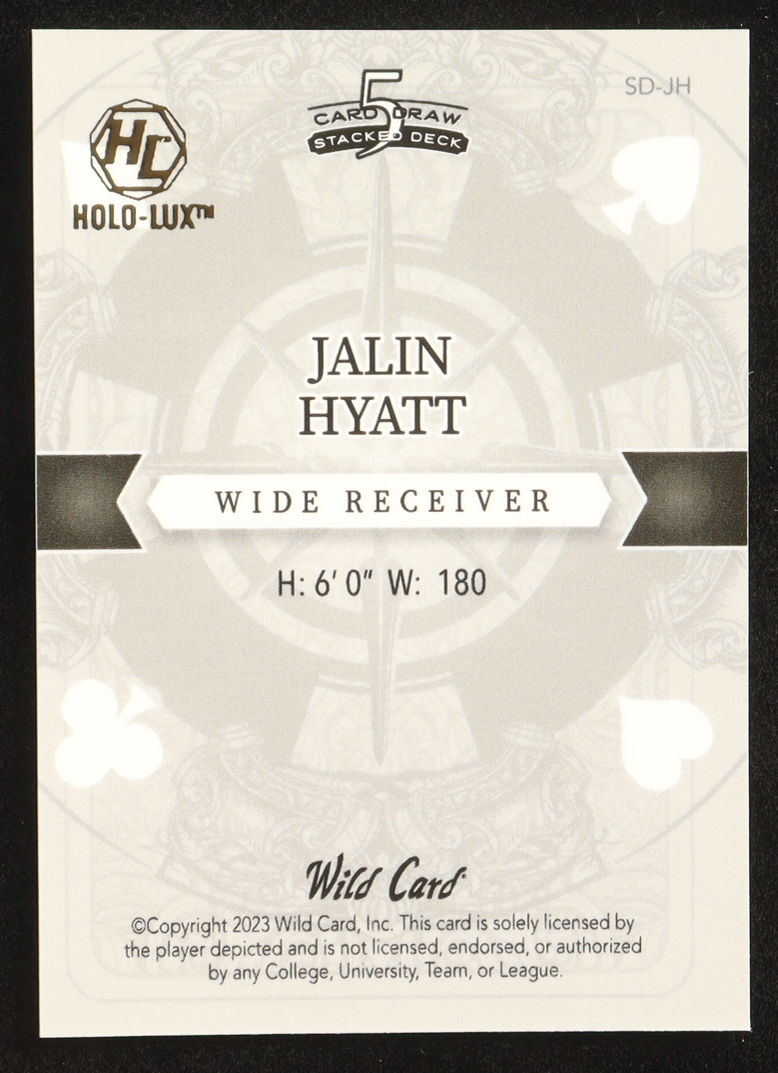 Jalin Hyatt 2023 Wild Card 5 Card Draw Stacked Deck Hololux Ace Hearts Green Cracked Ice #SDJH #2/3 RC