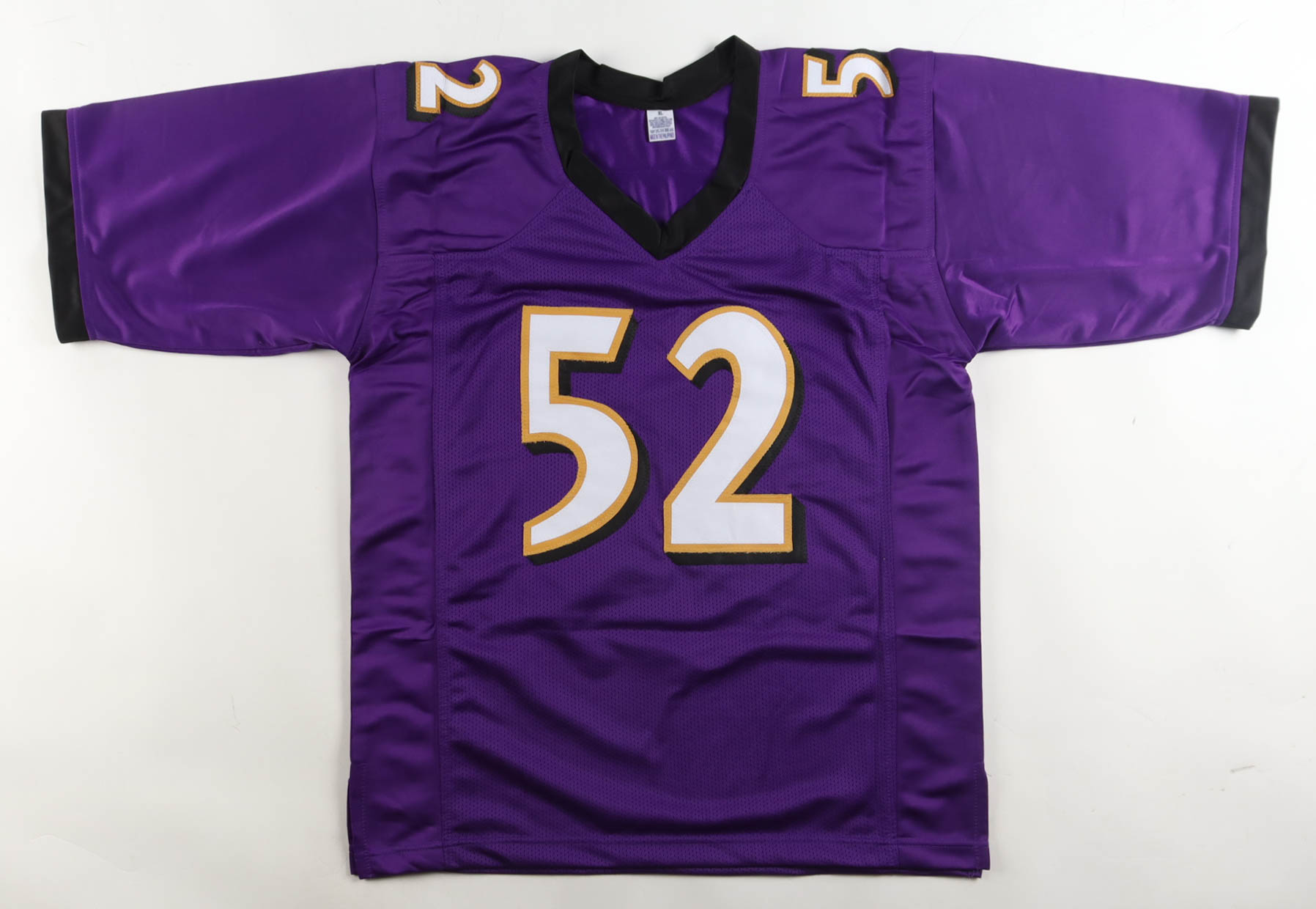 Custom jersey with everything sewn on, size XL. Hand-signed by Ray Lewis (HOF)