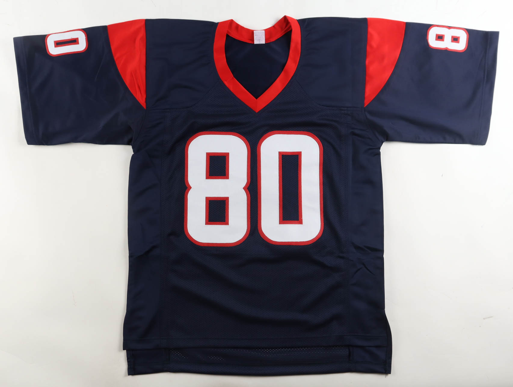 Custom jersey with everything sewn on, size XL. Hand-signed by Andre Johnson.