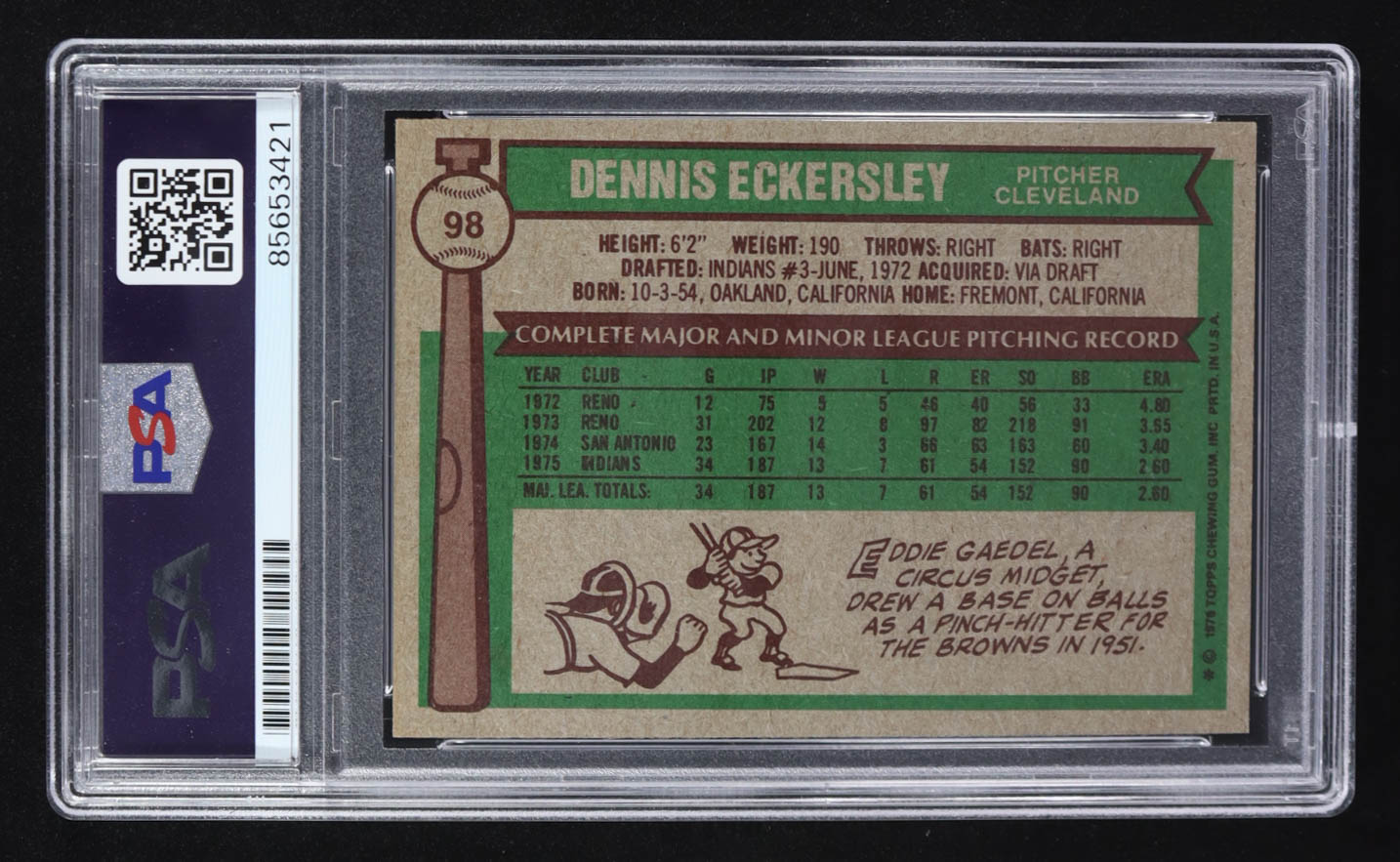 Dennis Eckersley Signed 1976 Topps #98 RC (PSA | Autograph Graded PSA 10)