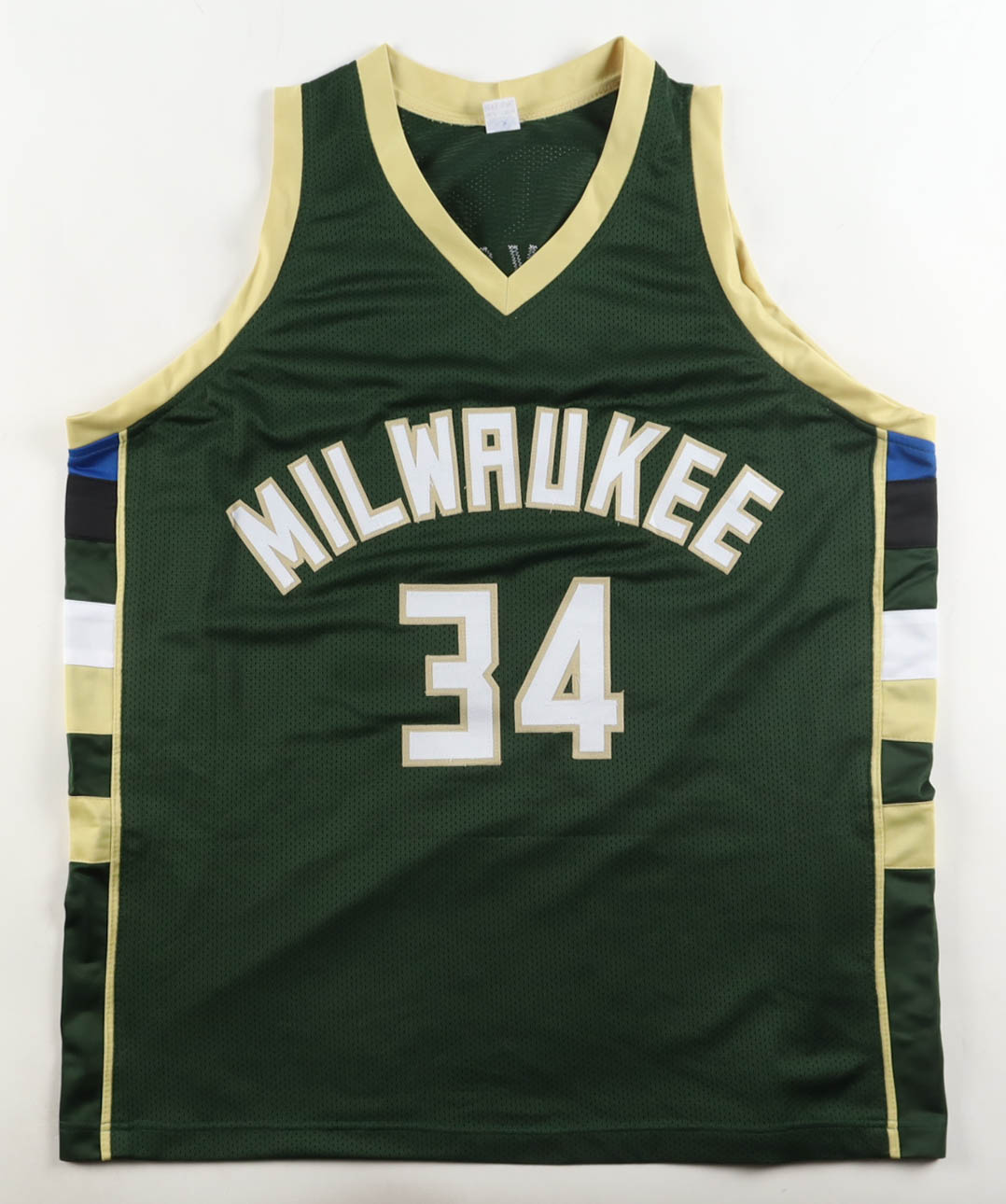 Custom jersey. Everything is sewn on, size XL. Hand-signed by Giannis Antetokounmpo.