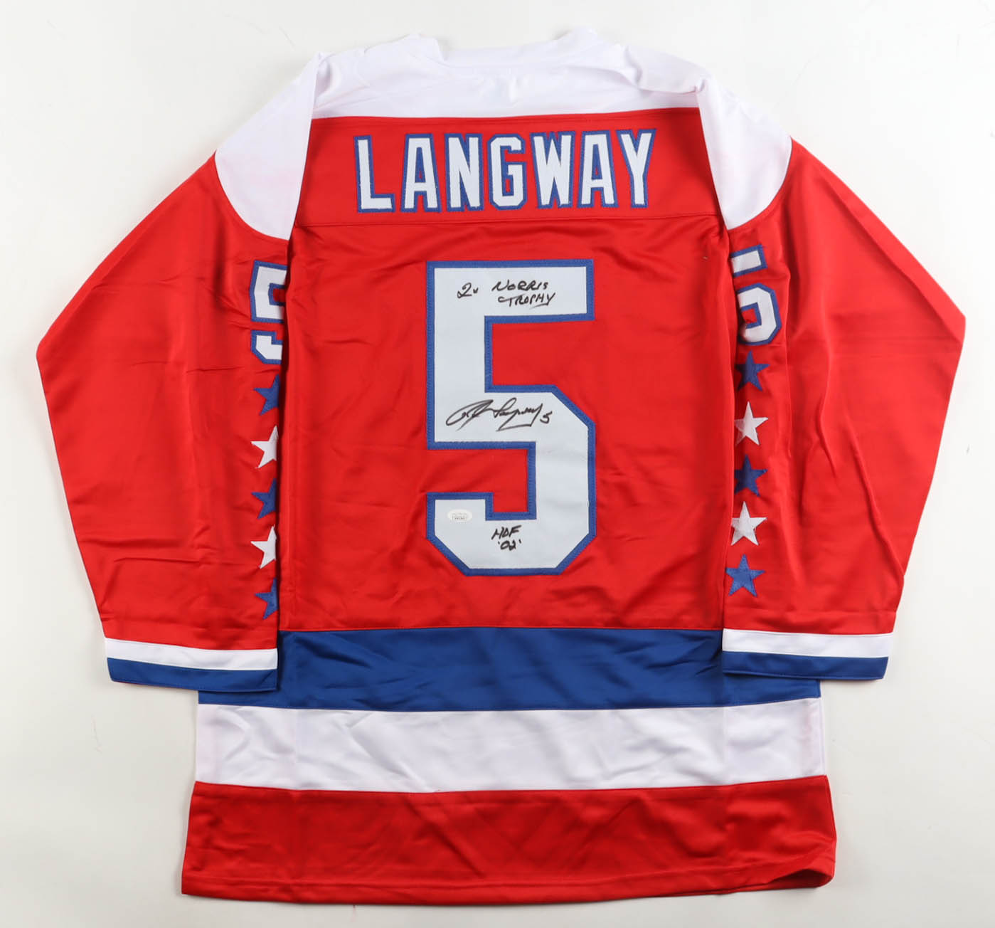 Rod Langway Signed Jersey Inscribed "2x Norris Trophy" & "HOF 02" (JSA)