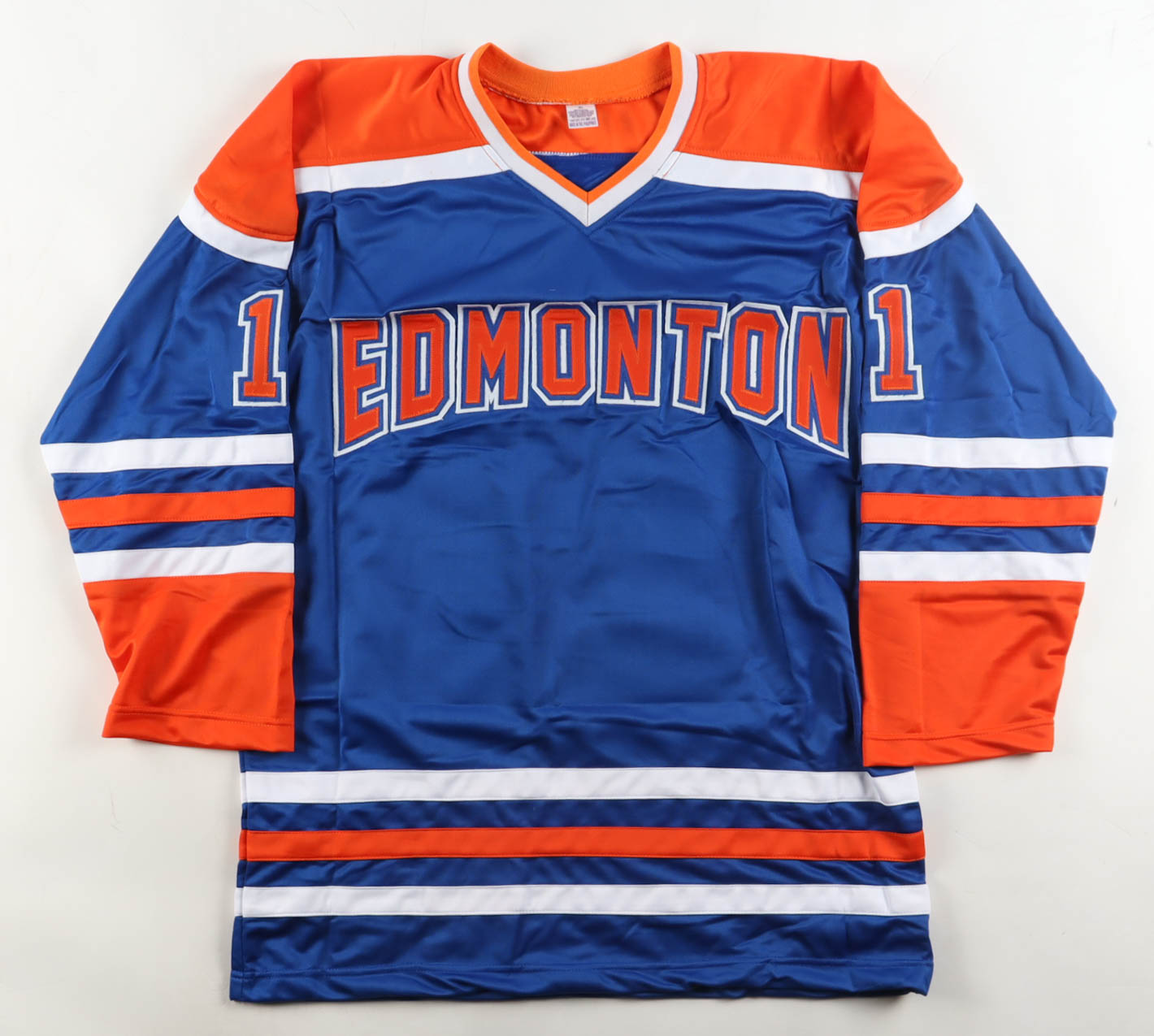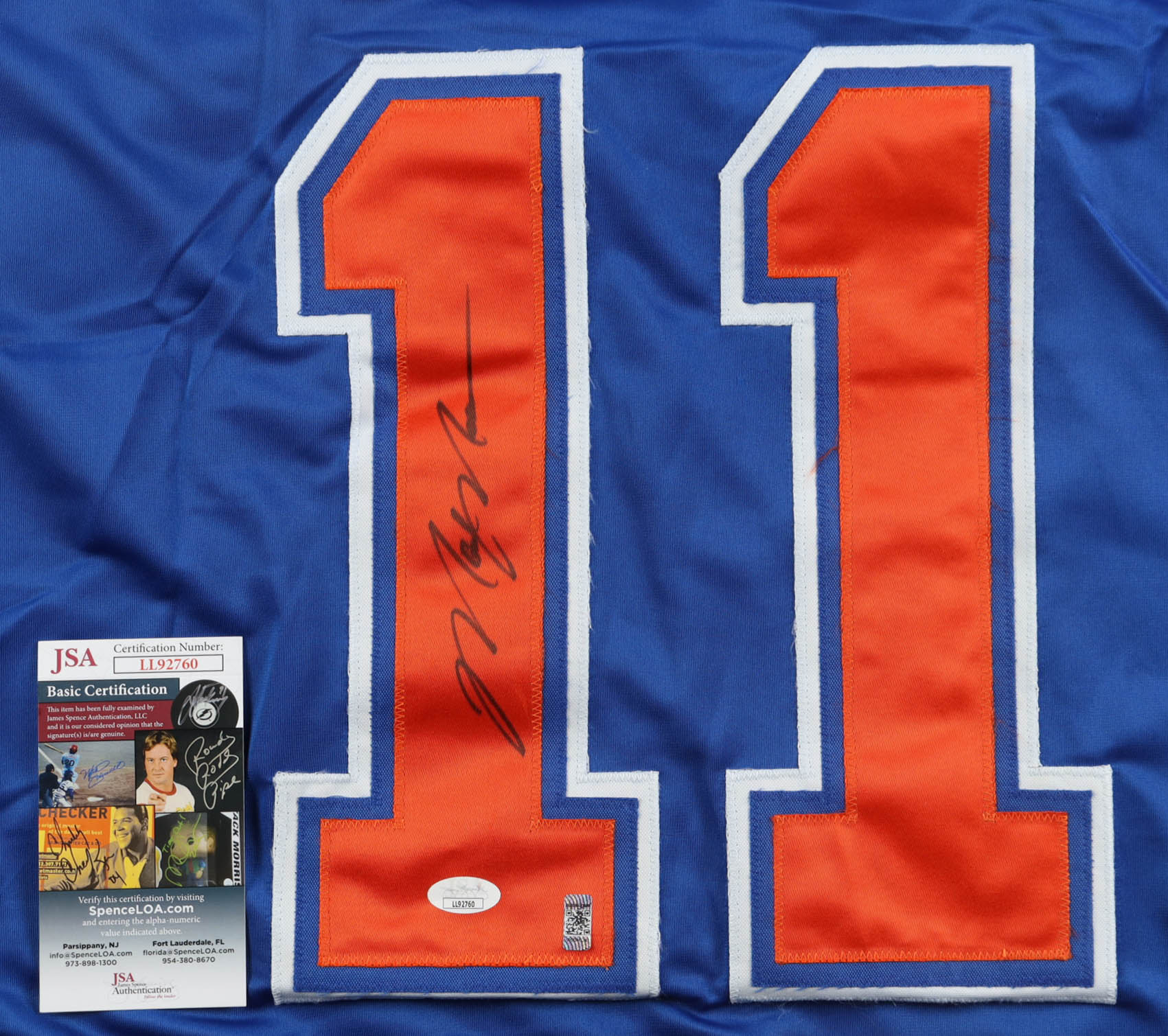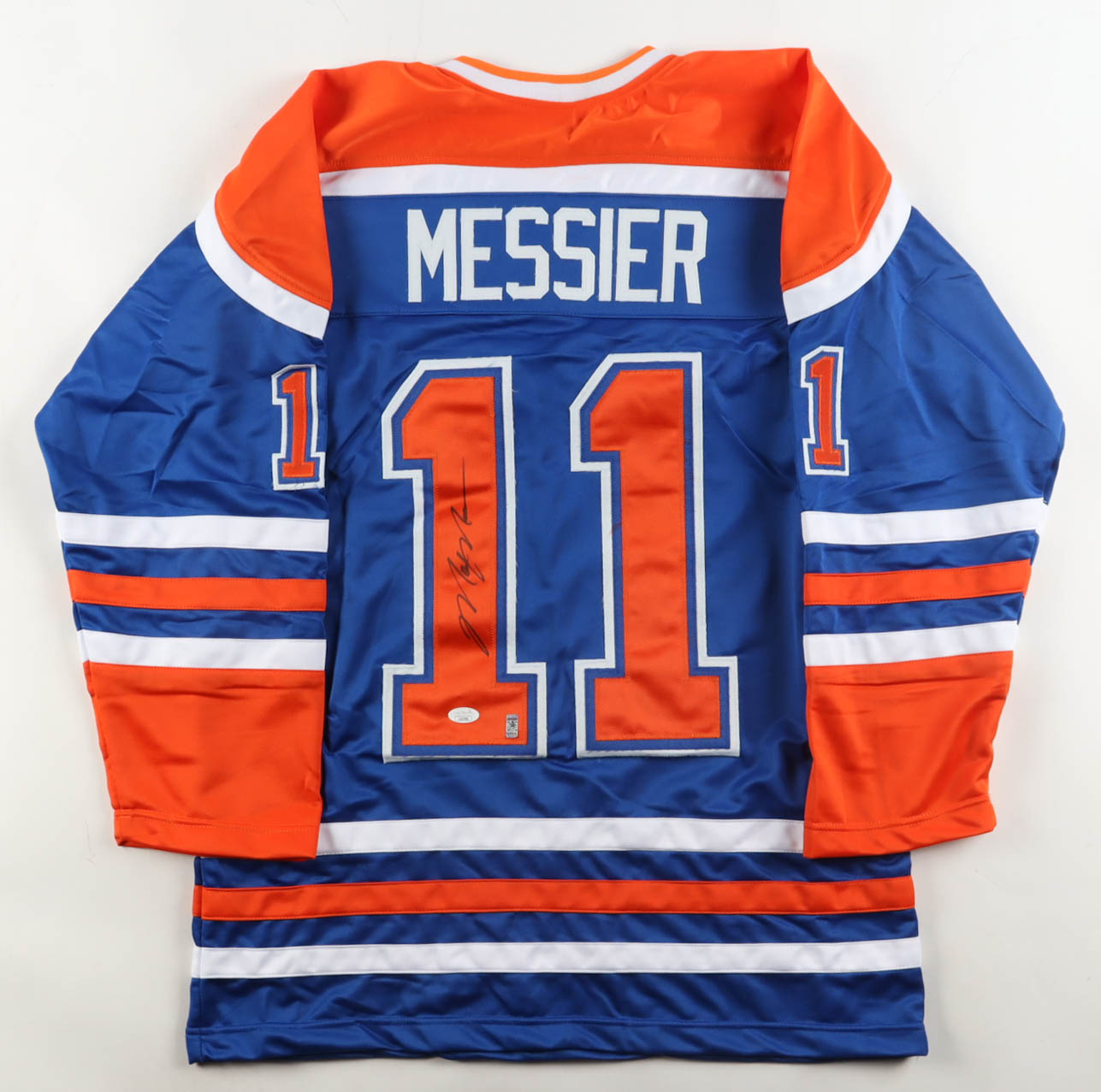 Custom jersey with everything sewn on, size XL. Hand-signed by Mark Messier (HOF).